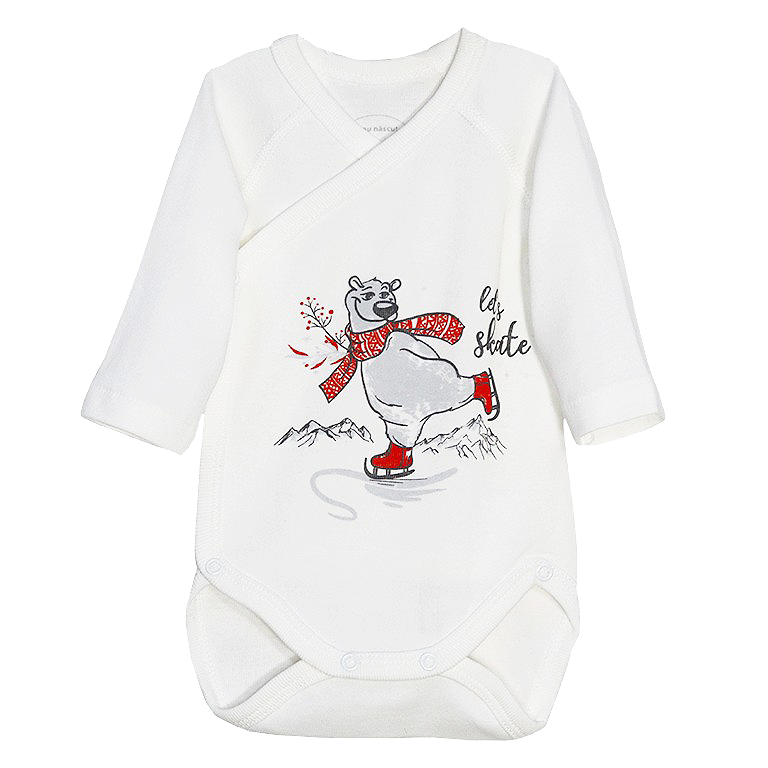 Body cu maneca lunga - Urs patineBody-ul se prinde cu cate doua capse pe fiecare partea (dreapta/stanga), iar in partea de jos cu alte trei capse.Materialul este de buna calitate, rezistent la spalat, iar culorile se pastreaza in timp.