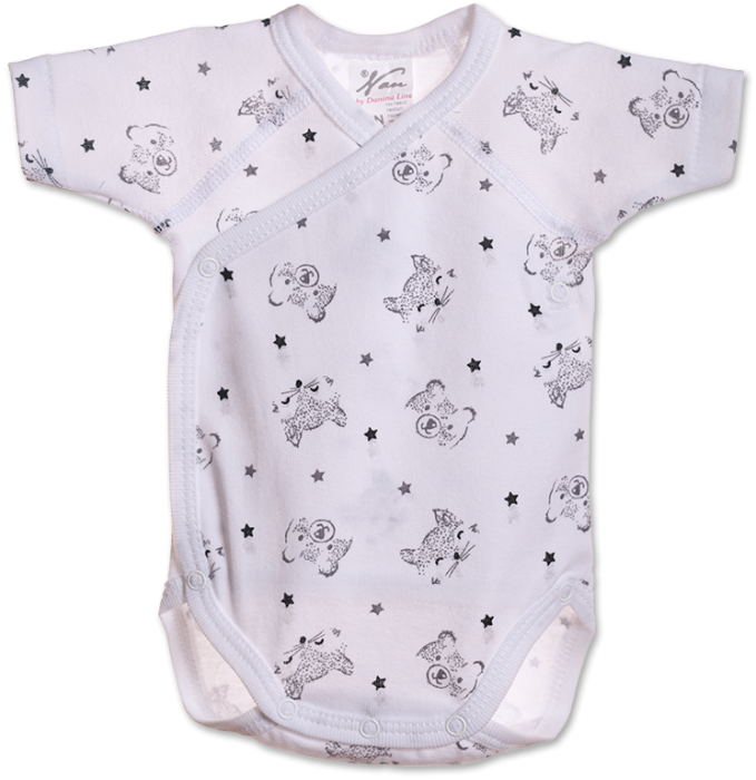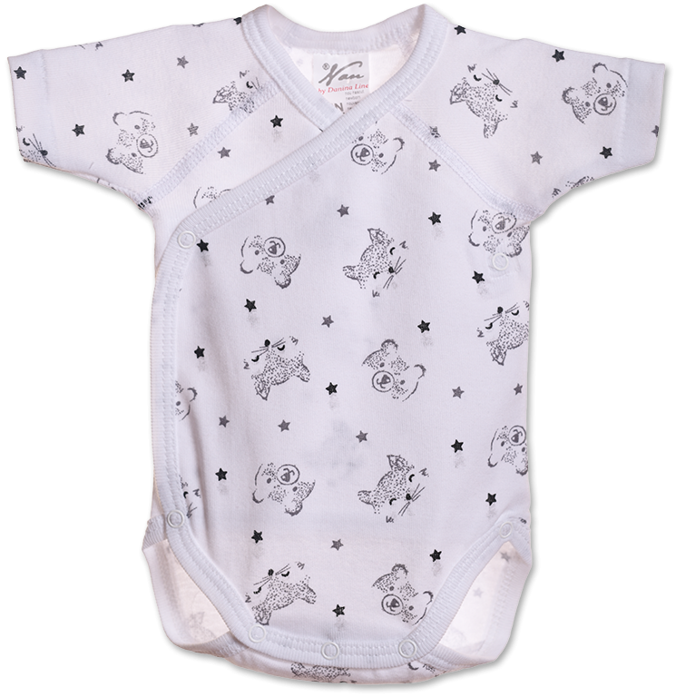 Body cu maneca scurtaBody-ul se prinde cu cate doua capse pe fiecare partea (dreapta/stanga), iar in partea de jos cu alte trei capse.Materialul este de buna calitate, rezistent la spalat, iar culorile se pastreaza in timp.Se poate folosi in toate anotimpurile anului.Material: 100% bumbac