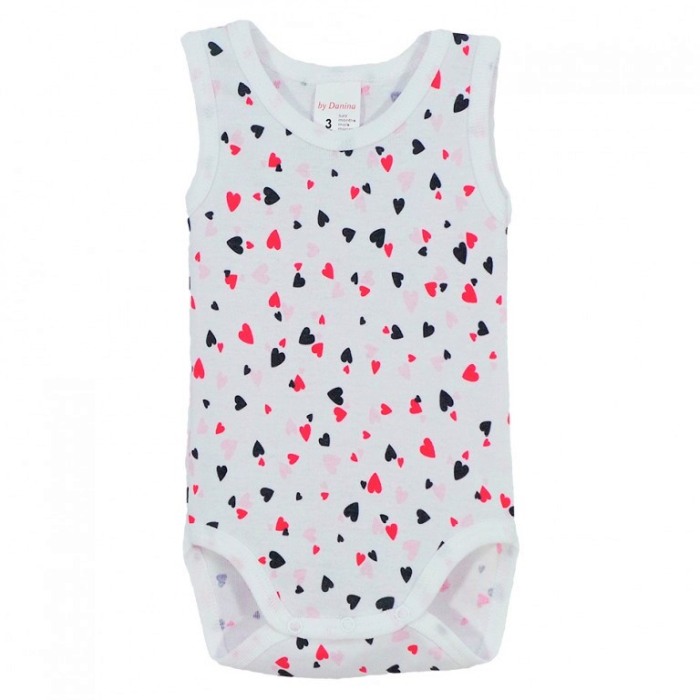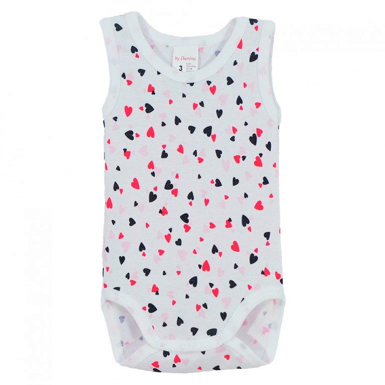 Body maiou cu imprimeu - InimioareBody-ul maiou este ideal pentru perioada calda sau pentru a fi imbracat sub alte hainute.Este prevazut cu 3 capse in partea de jos. Materialul si imprimeul sunt de calitate si rezista in timp si la spalat. Material: 100% bumbac Culoare: albImprimeu: InimioareIntretinere: Spalare: automata / manuala Temperatura: max. 30°C Interzis: albirea si uscarea la tambur Calcare: temperatura medie Fabricat in Romania