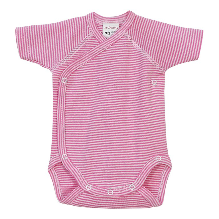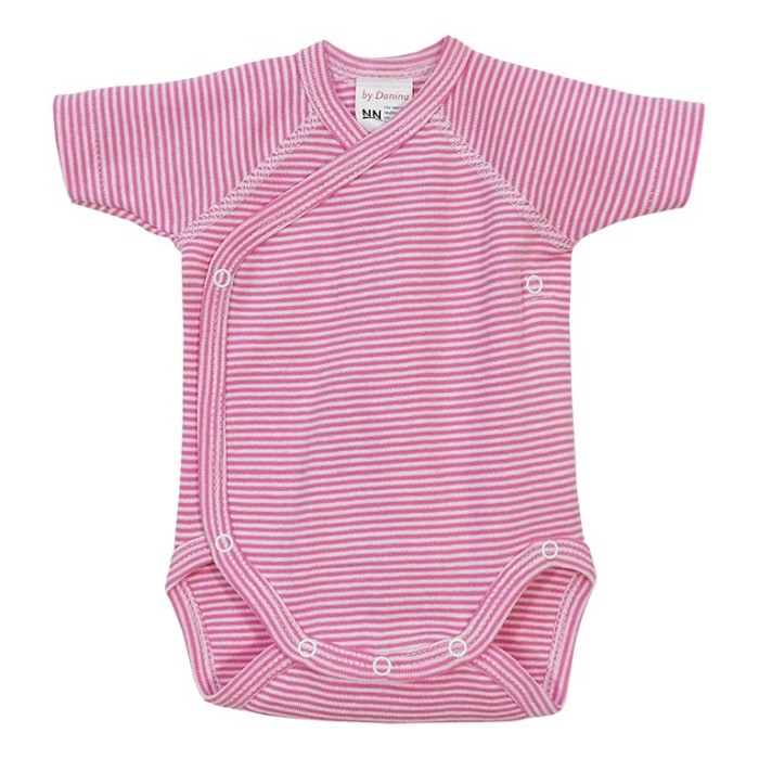 Body maneca scurta Dungi roz/albBody-ul cu maneca scurta este ideal pentru perioada calda sau pentru a fi imbracat sub alte hainute. Este prevazut cu 3 capse in partea de jos. Materialul si imprimeul sunt de calitate si rezista in timp si la spalat. Material: 100% bumbac Culoare: albImprimeu: Dungi roz/albIntretinere: Spalare: automata / manuala Temperatura: max. 30°C Interzis: albirea si uscarea la tambur Calcare: temperatura medie Fabricat in Romania