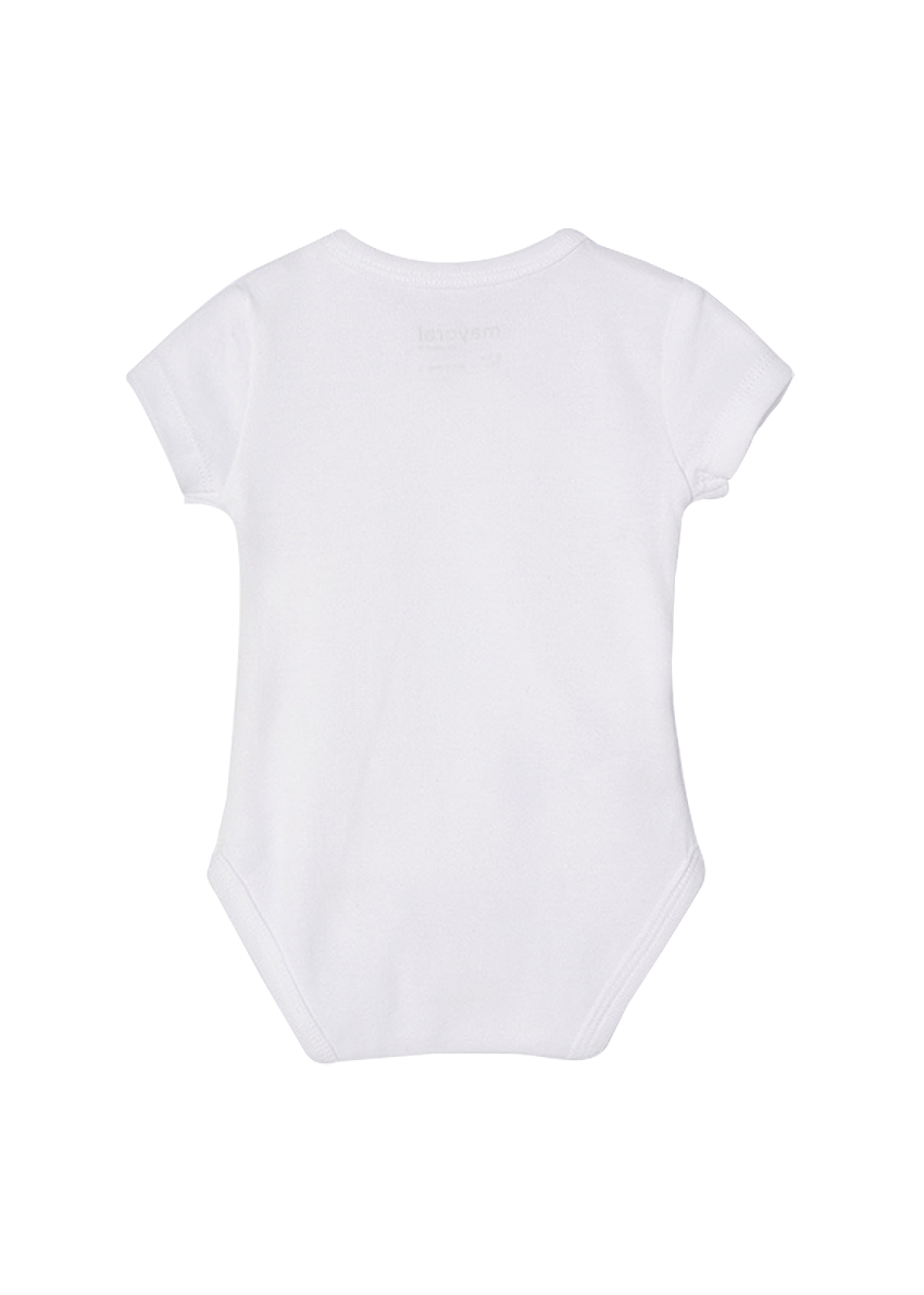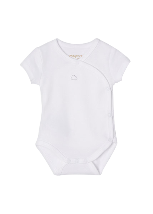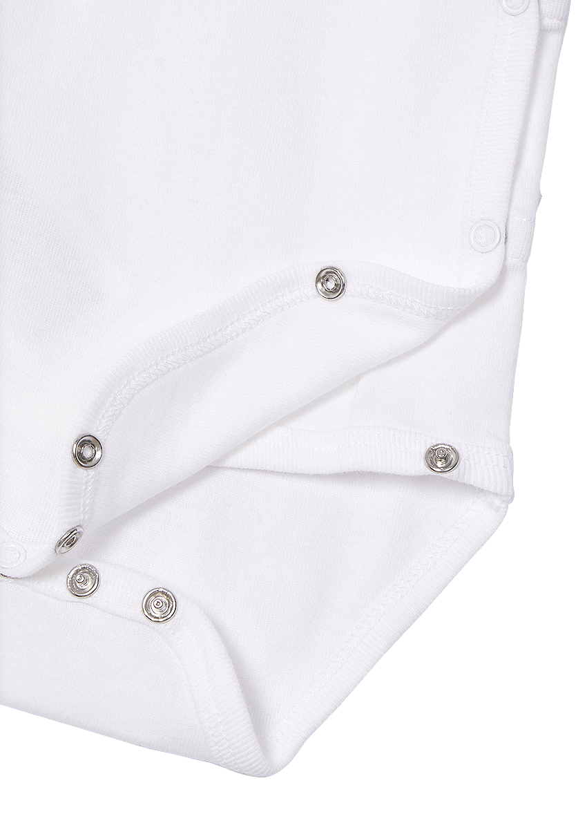 Body maneca scurta ECOFRIENDS - AlbBody-ul cu maneca scurta este ideal pentru perioada calda sau pentru a fi imbracat sub alte hainute.Gulerul este incrucisat cu deshidere laterala si inchidere cu 3 capse pe partea dreapta si 3 capse in partea de jos pentru a facilita imbracarea body-ului. Se poate folosi in toate anotimpurile anului.Material: 100% bumbacCuloare: albIntretinere: