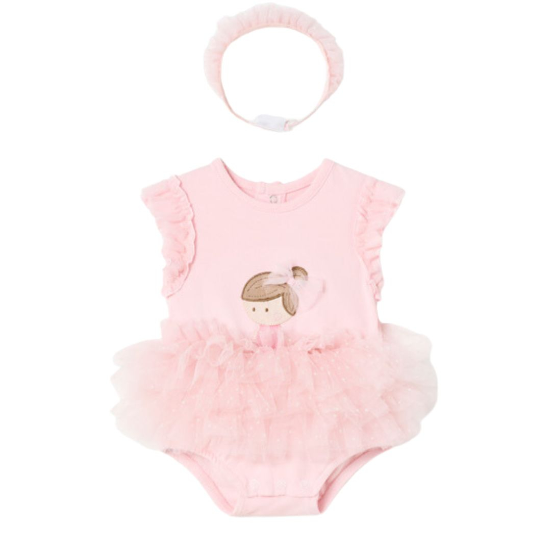 Body tutu din bumbac sustenabil Roz cu bentita pentru nou-nascut - Mayoral 4-6 luni