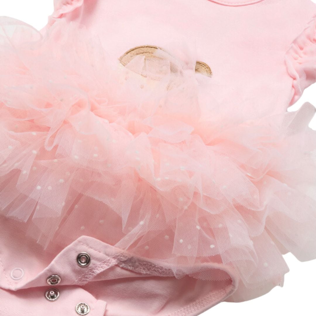Body tutu din bumbac sustenabil Roz cu bentita pentru nou-nascut - MayoralBody-ul are un gulerul rotund si volanase la umeri.Acesta are inchidere pe spate cu 3 capse si in partea de jos alte 3 capse, pentru ca bebelusul sa poata fi imbracat usor.Materialul este de buna calitate, rezistent la spalat, iar culorile se pastreaza in timp.Fustita din tul este suprapusa in straturi.
