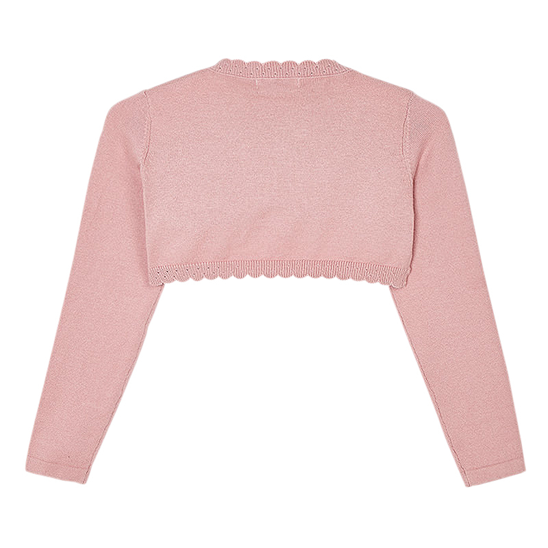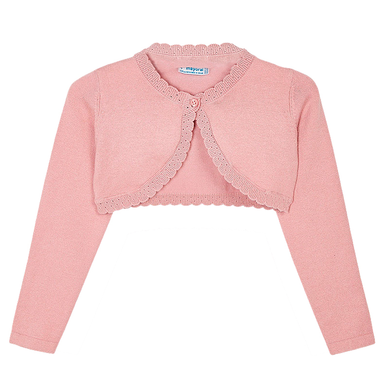 Bolero cu dantela - RozaliuAcest bolero cu maneca lunga are gulerul rotund si inchidere cu un singur nasture pe decolteu.