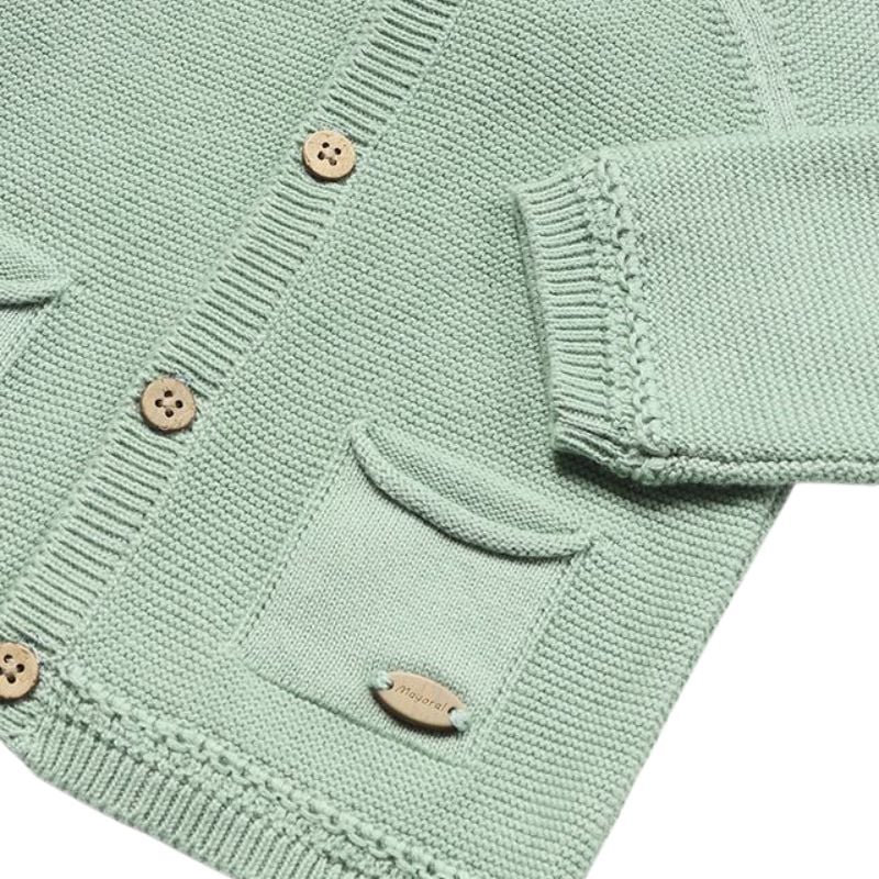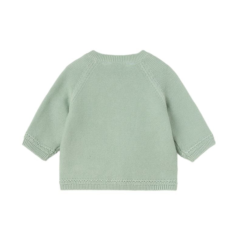 Jacheta vernil tricotata cu bumbac sustenabil ECOFRIENDSJacheta tip cardigan cu maneca lunga are gulerul rotund si inchidere cu nasturi bej pe partea frontala.Buzunare atasate.Material: 100% bumbac Culoare: vernilIntretinere: Spalare: automata / manuala, cu detergent pentru rufe delicate Temperatura: max. 30°C SCoarcere: automata la un numar mediu de rotatii/minut / manuala Interzis: albirea, curatarea chimica si uscarea la tambur Uscare: lasati la uscat pe o suprafata plata Calcare: max. 150°C