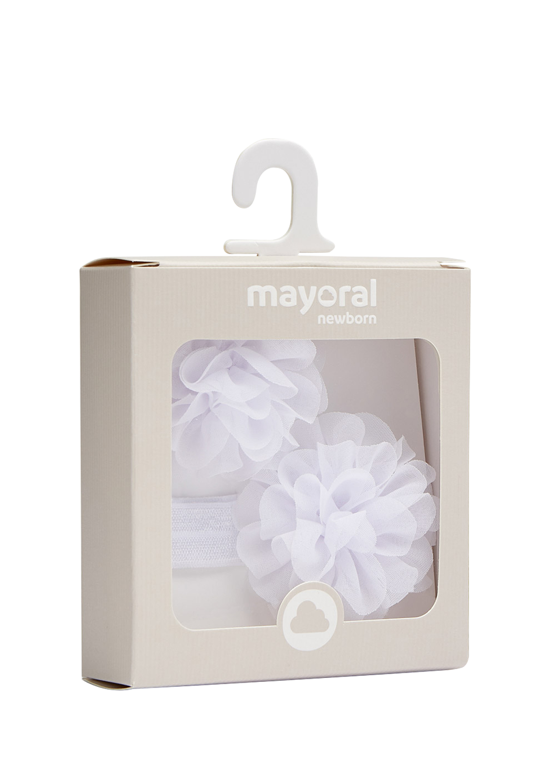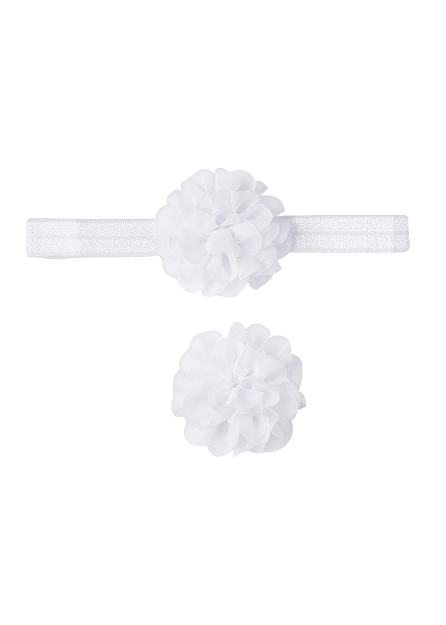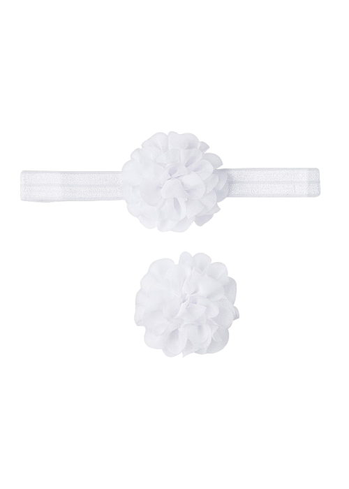 Diadema (bentita) si agrafa - AlbDiadena este elastica, ingusta si are aplicata un pampon din dantela.Aceasta poate fi completata usor la o tinuta pentru bebe fetita sau adaugata oricarui cadou.