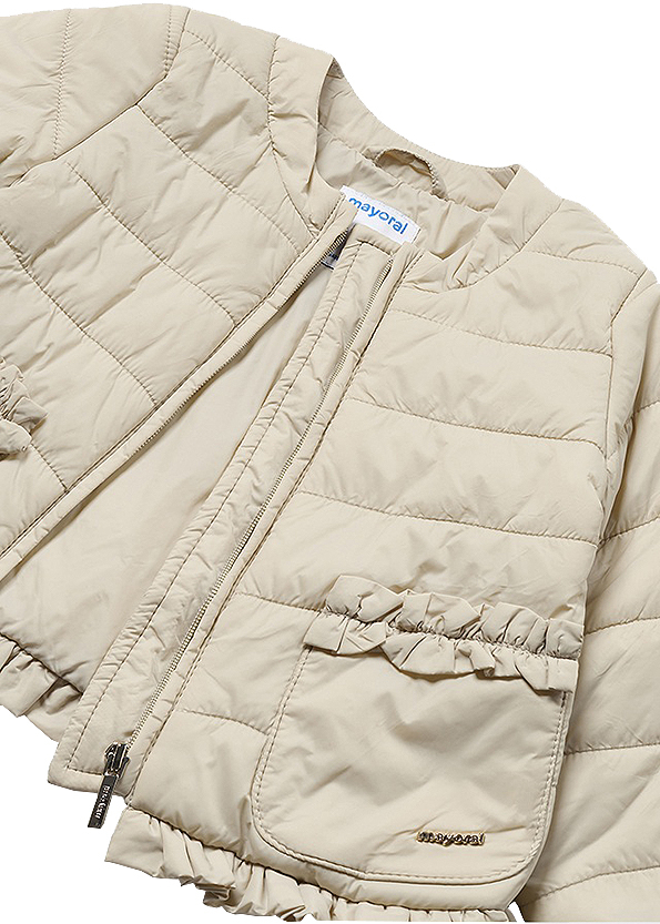 Geaca antivant - bejGeaca antivant pentru fetite are un guler rotund cu detalii in ton.