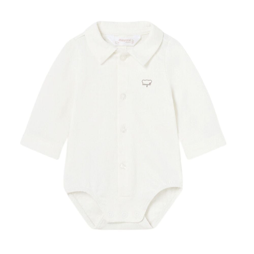 Body camasa ECOFRIENDS - Alb Body-ul camasa are maneci lungi si un guler tip camasa.Inchiderea se face cu 4 nasturi pe fata si 3 capse in partea de jos, pentru o imbracare usoara.Material: 100% bumbacCuloare: off whiteIntretinere: