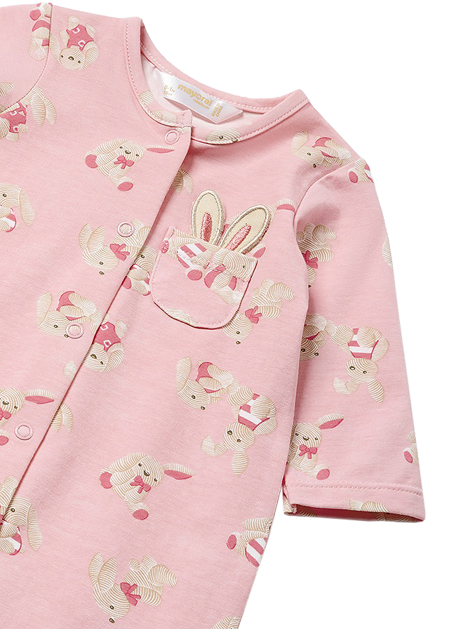 Salopeta (Pijama) roz si imprimeu iepurasi Better Cotton - Mayoral