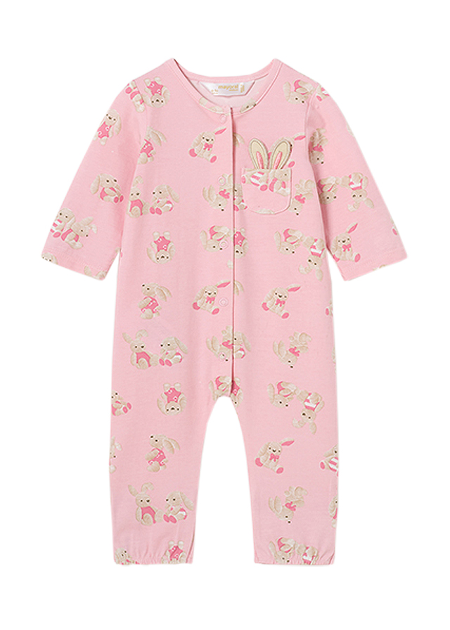 Salopeta (Pijama) roz si imprimeu iepurasi Better Cotton - Mayoral