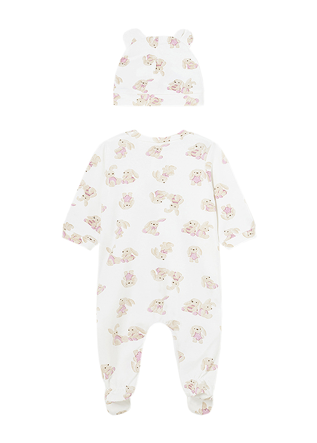 Set 2 piese Salopeta si caciulita iepurasi roz- Better Cotton- Mayoral 2-4 luni (65 cm)