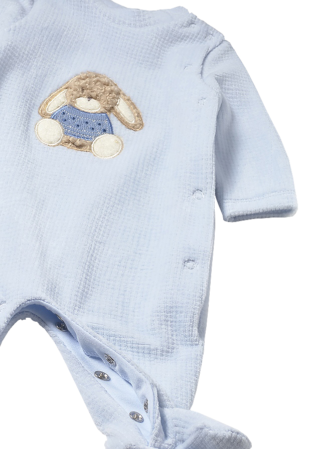 Salopetele (pijamale) au maneca lunga, gulerul rotund si botosi.