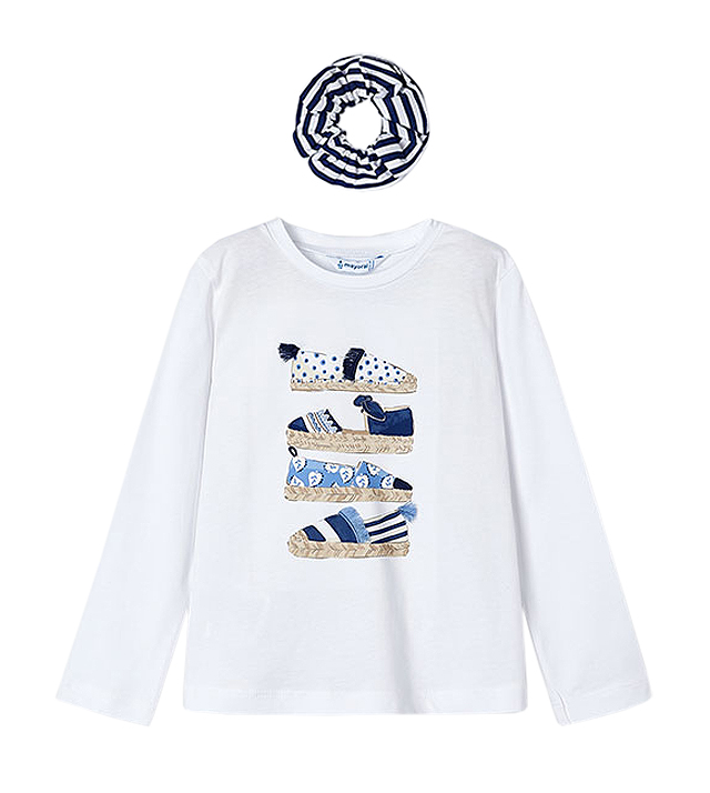 - Tricou alb cu elastic par, Better Cotton, fetita - Mayoral
