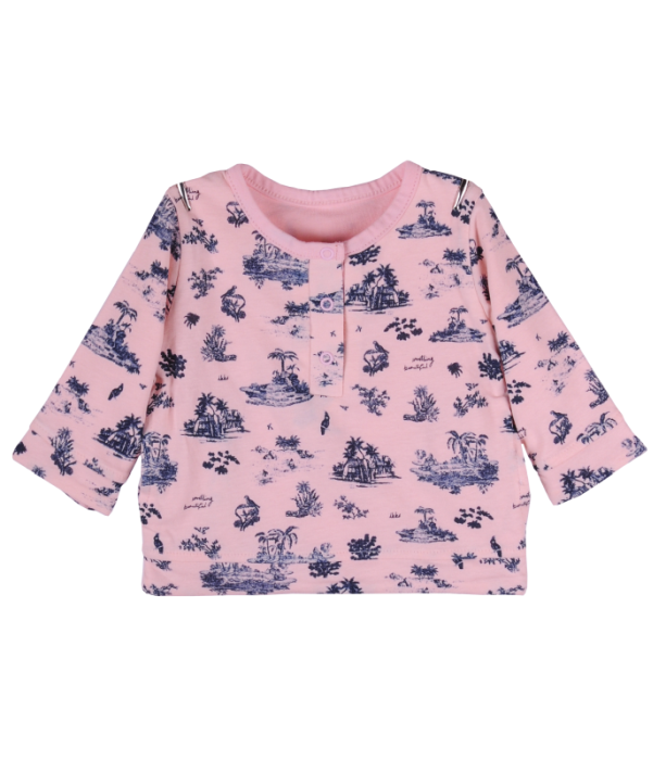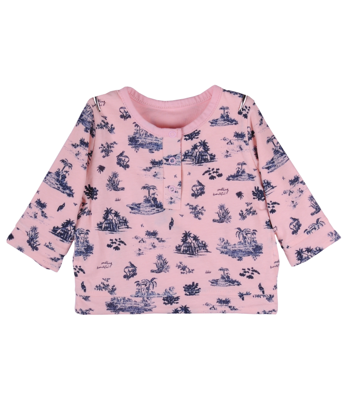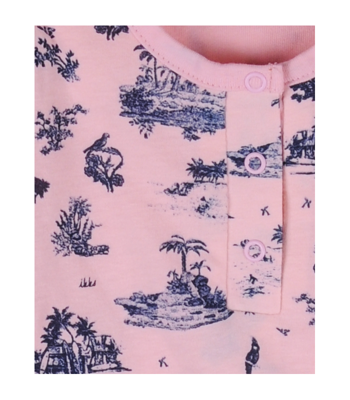 JachetaJacheta este dublata pe interior cu un material subtire din bumbacEste la baza gatului, avand 3 capse pentru inchidere/deschidere.Se poate purta pe timp racoros.jacheteMaterial: 100% bumbac. Culoare: roz Imprimeu: palmieri albastri Intretinere: Spalare: automata / manuala Temperatura: max. 30°C Interzis: albirea si uscarea la tambur Calcare: temperatura medie Fabricat in Romania