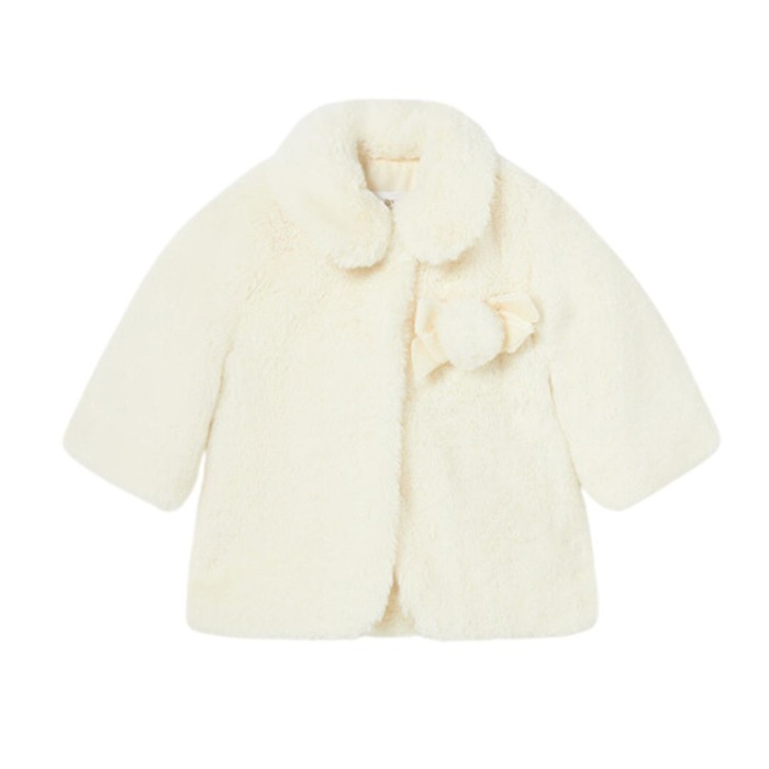 Palton blanita - Alb cu ciucure - Mayoral Paltonul cu maneca lunga are gulerul rotund si se inchide cu capse pe partea frontala.Are ca design un ciucure tot din blanita.
