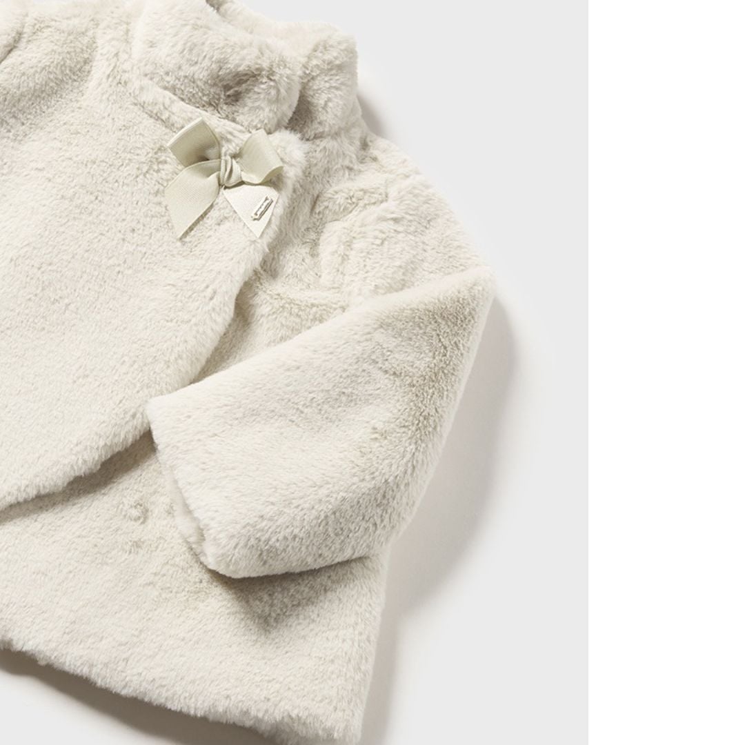 Palton blanita - AlbPaltonul elegant cu maneca lunga are gulerul rotund inalt si se inchide cu capse pe partea frontala.Are ca design o fundita.