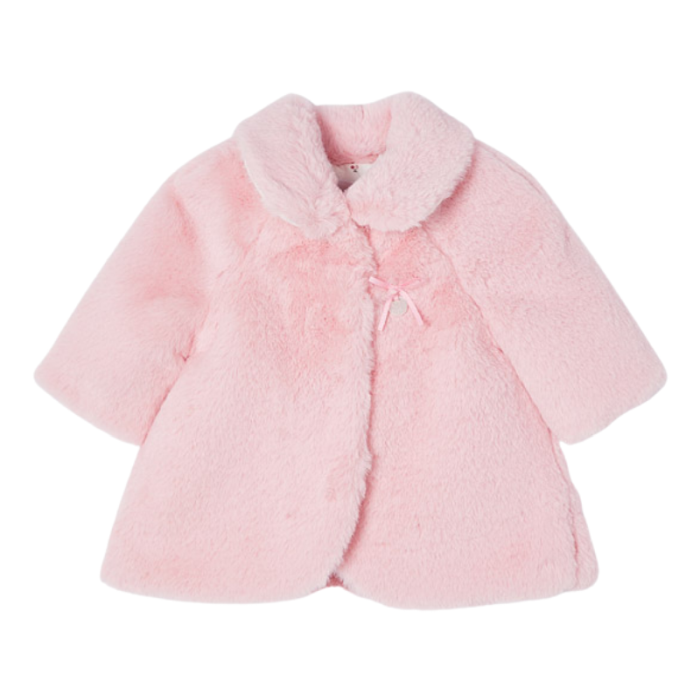 Palton blanita - Roz Paltonul cu maneca lunga are gulerul rotund si se inchide cu capse ascunse pe partea frontala, pentru a permite imbracarea mai usoara.Are ca design o fundita in aceeasi nuanta. Tesatura exterioara din par moale si placut. Material: exterior - 100% poliester captuseala - 100% vascoza umplutura - 100% poliesterCuloare: roz Intretinere: Spalare: automata / manuala, cu detergent pentru rufe delicate
