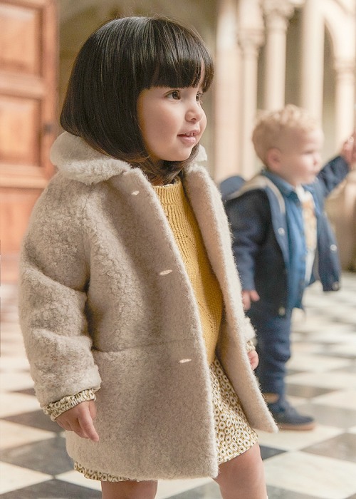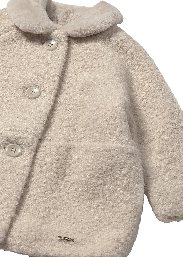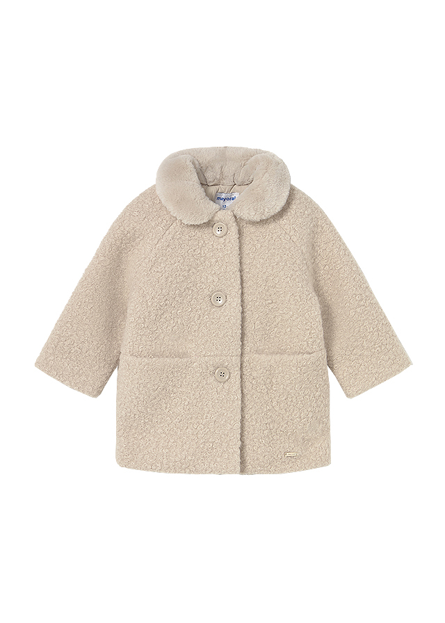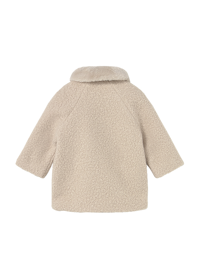 Palton buclat cu guler blanita - Bej Paltonul este elegant, are maneca lunga si gulerul din blanita.Materialul este buclat, perfect pentru tinutele mai calduroase.