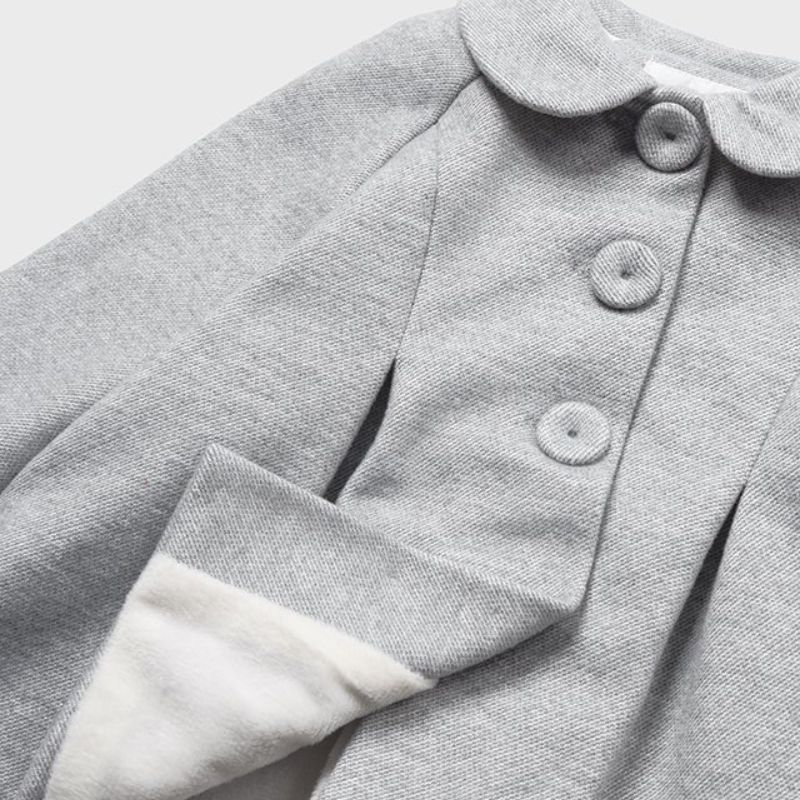 Palton stofa - GriPaltonul elegant din stofa cu maneca lunga are guler rotund si se inchidere cu 3 nasturi. Materialul este calduros din panza rezistenta si clasica. Paltonul ca model are un pliu larg pe spate si doua pliuri mici din tale pe partea din fata.Captuseala este din blanita foarte scurta si moale in culoare alb bej .Material: exterior - 89% poliester / 9% viscoza / 2% elastan captuseala - 100% poliesterCuloare: gri deschis Intretinere: Spalare: automata / manuala, cu detergent pentru rufe delicate