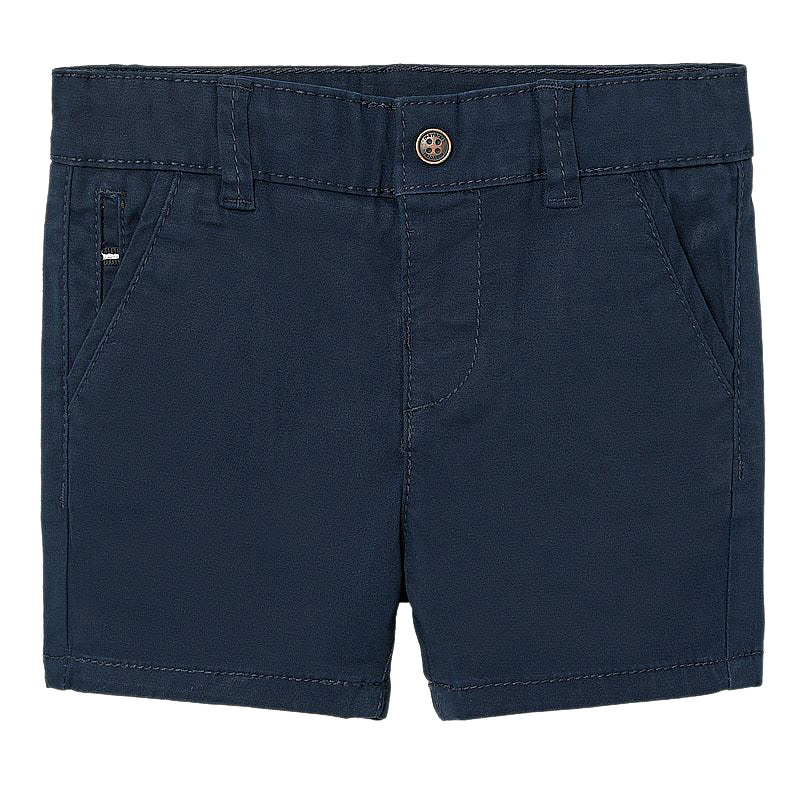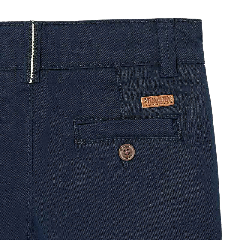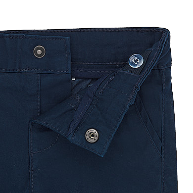 Pantaloni scurti Chino - Navy blue Pantaloni scurti tip bermude pentru baiati. Talie reglabila si inchidere cu nasture, gaici pe talie, slit fals pana la marimea 5. Model cu multiple buzunare.Tesatura confortabil, foarte rezistenta de twill. Acest articol prezinta o nuanta speciala care face ca finisajul sa nu fie uniform sau culoarea poate varia in functie de spalarile efectuate.Material: 98% bumbac / 2% elastanCuloare: navy blueIntretinere: Spalare: automata / manuala, cu detergent pentru rufe delicate