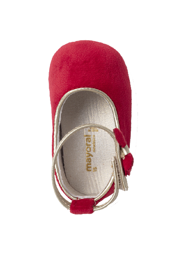Pantofi catifea - Rosu Pantofi tip balerini sunt in stil clasic si atemporal pentru cele mai elegante stiluri.Incaltamintea are interiorul captusit si brant din bumbac respirabil. Acestia au inchidere cu bratara reglabila, tip arici, pe glezna pentru a obtine o prindere mai buna.Produsul se prezinta intr-o cutie din linia Newborn, ideala pentru cadou.