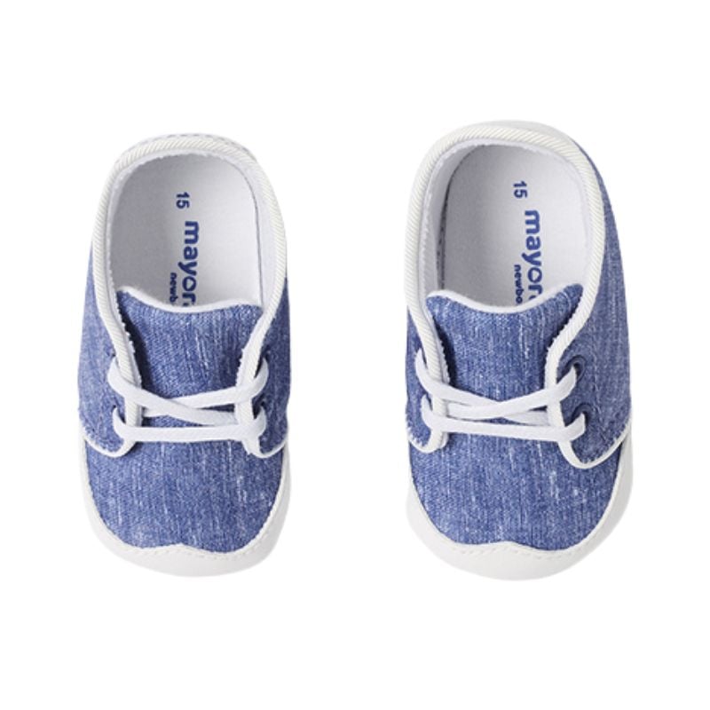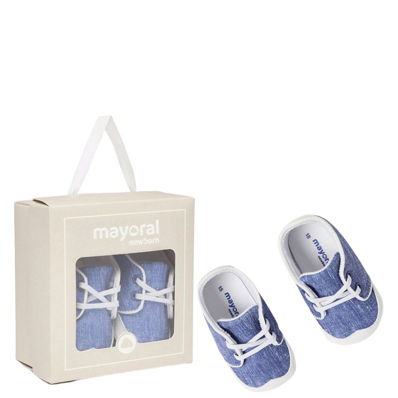 Pantofi cu siret - Bleu - MayoralIncaltaminte pentru bebelusi, practici si usor de combinat zi de zi. Invelis exterior din materialetextile.Inchidere cu sireturi care permit imbunatatirea fixarii si sustinerii piciorului. Articolul se prezinta intr-o cutie din linia Newborn, ideala pentru cadou.