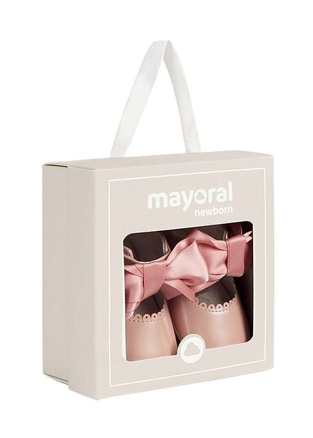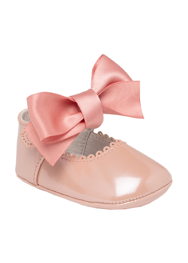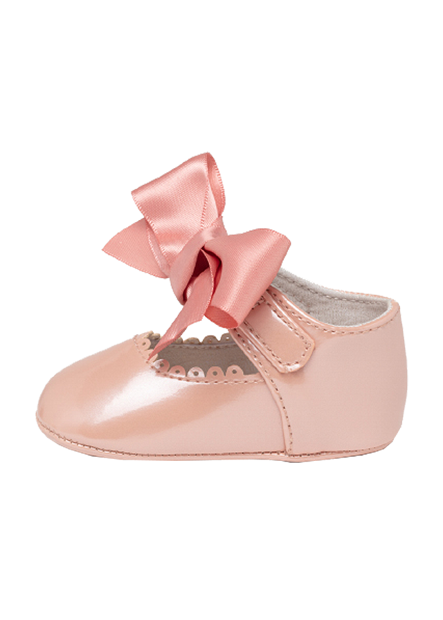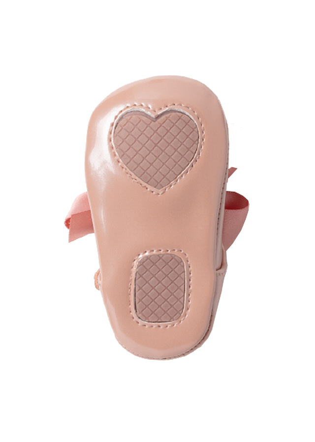 Pantofi funda ceremonie - RozPantofi tip balerini sunt in stil clasic si atemporal pentru cele mai elegante stiluri. Incaltamintea are interiorul captusit si brant din bumbac respirabil. Acestia au invelisul exterior cu efect lacuit si inchidere cu banda, tip arici, reglabila, care garanteaza o prindere perfecta a piciorului.Produsul se prezinta intr-o cutie din linia Newborn, ideala pentru cadou.