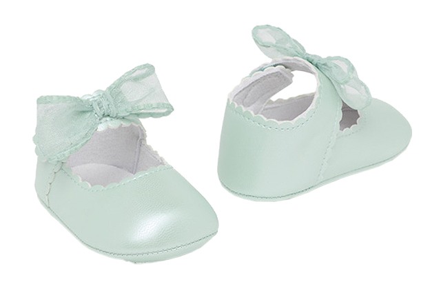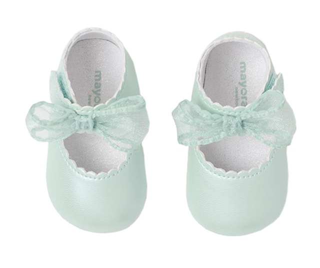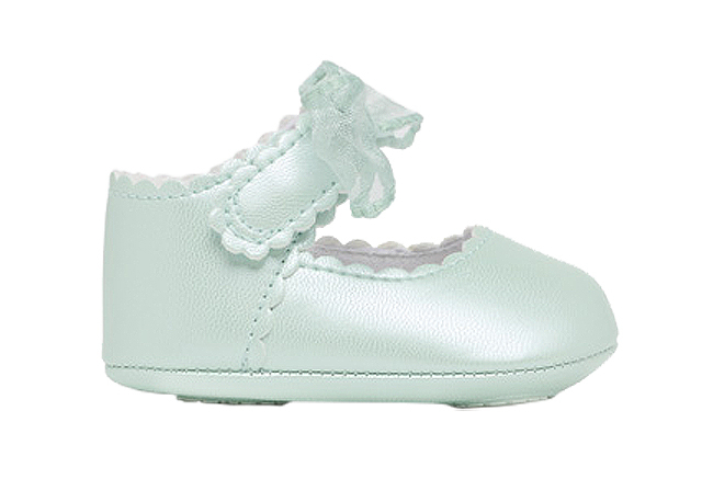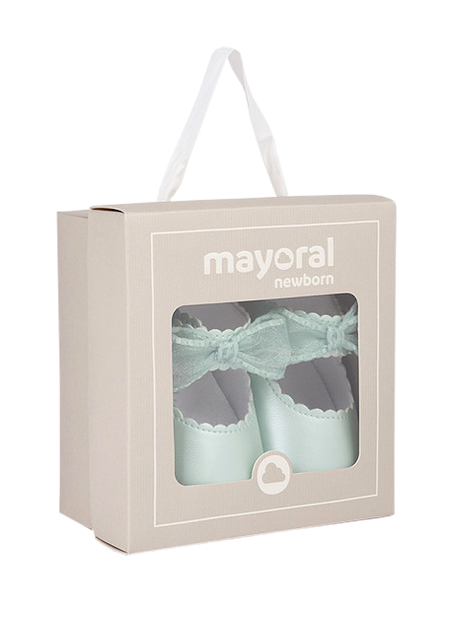 Pantofi funda ceremonie - Vernil - MayoralPantofi tip balerini sunt in stil clasic si atemporal pentru cele mai elegante stiluri. Incaltamintea are interiorul captusit si brant din bumbac respirabil. Acestia au invelisul exterior cu efectsidefat si inchidere cu banda, tip arici, reglabila, care garanteaza o prindere perfecta a piciorului.Produsul se prezinta intr-o cutie din linia Newborn, ideala pentru cadou.