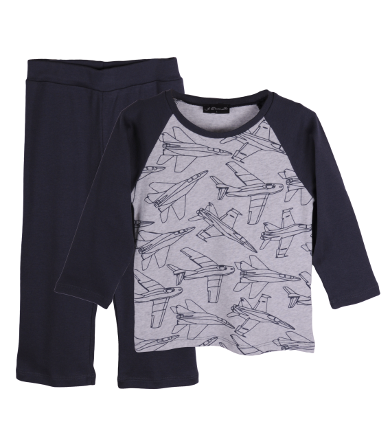 Pijama bicolora gri/negru Avioane 5 ani