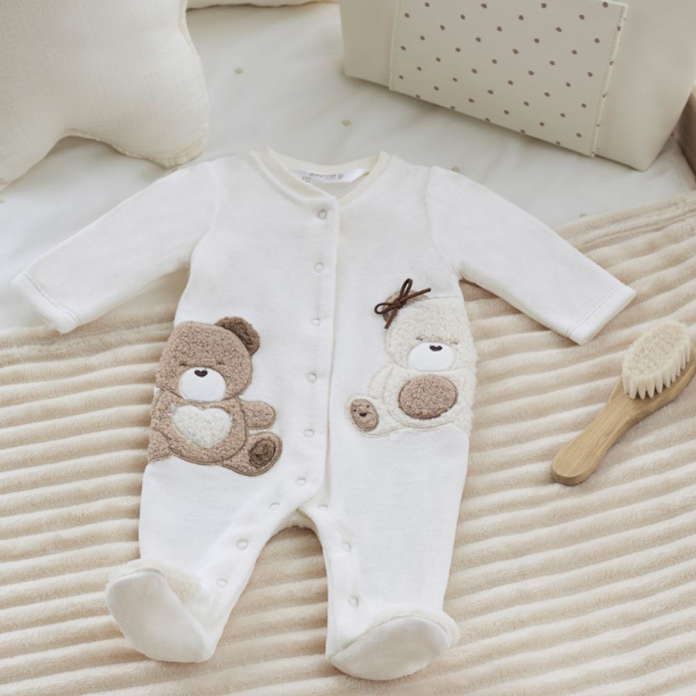 Pijama plusata Ursi bumbac sustenabil nou-nascutSalopeta (pijama) are maneca lunga, un guler rotud si botosi.Inchiderea se face cu capse pe fata si in interiorul picioruselor.Elemente decorative: aplicatie ursulet si ursuleata Material: 75% Bumbac
