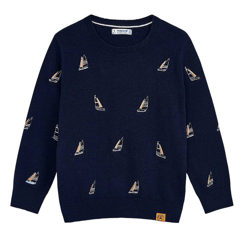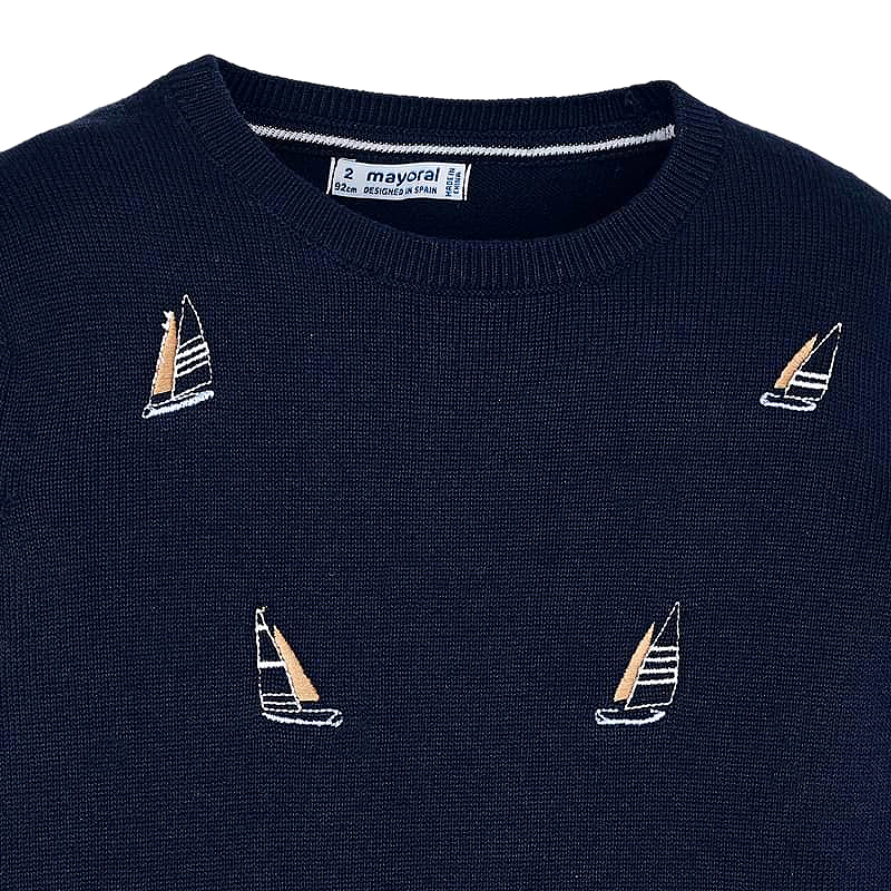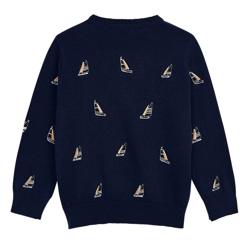 Pulover cu broderie - barcute Puloverul cu maneca lunga are gulerul rotund.Modelul din colectia noastra de articole de imbracaminte clasice cu design basic, ideal pentru completarea oricarei tinute.Material tricotat fin, moale si placut la atingere.Design cu broderie barcute