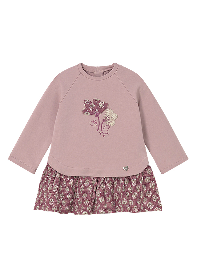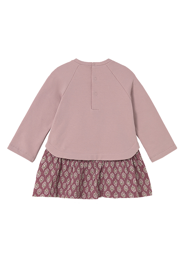 Rochie combinata - roz inchisRochita cu maneca lunga ranglan, are gulerul rotund si se inchide cu capse pe spate, pentru a facilita imbracarea copilului.Modelul este simulat cu pulover suprapus.Aceste este fabricat dintr-un material din plus gros, fiind perfect pentru lunile reci.Elemente decorative: broderii, aplicatie pozitionata. Design cu imprimeu.Material: exterior - 94% bumbac / 4% elastan / 1% poliamida / 1% poliesterCuloare: roz inchisImprimeu: floriIntretinere: Spalare: automata / manuala Temperatura: max. 30°C