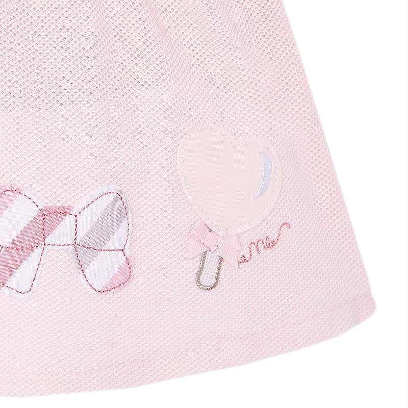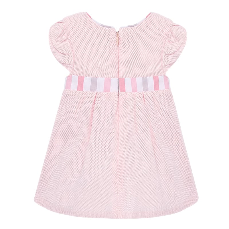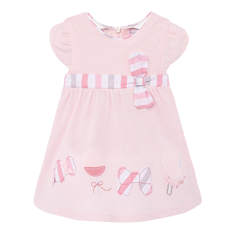 Rochie - FunditeRochita cu maneca scurta are un guler rotund si inchidere pe spate cu fermoar invizibil.Material clasic pique versatil si durabil. Rochita nu este captusita, este lejera, de vara insorita. Elemente decorative: bomboane, acadele si fundite aplicate.