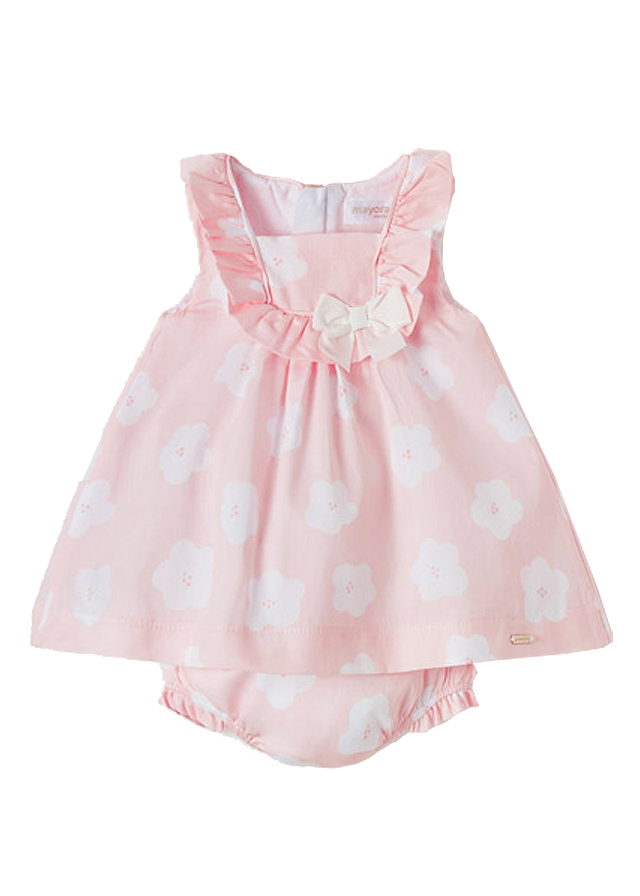 Chiloteii au talia reglabila.Acestia se asorteaza perfect cu rochita.Material fiind fluid pentru un confort maxim.Material: rochie - 100% bumbac captuseala - 100% bumbac chilotei - 100% bumbac Culoare: roz palImprimeu: floriIntretinere: