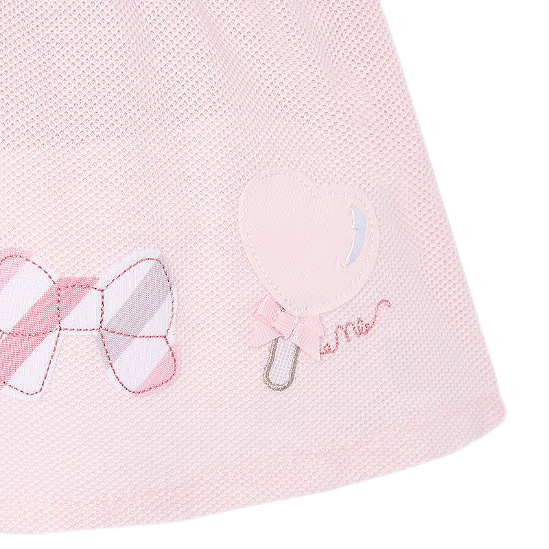 Rochie - FunditeRochita cu maneca scurta are un guler rotund  si inchidere pe spate cu fermoar invizibil.Material clasic pique versatil si durabil. Rochita nu este captusita, este lejera, de vara insorita. Elemente decorative: bomboane, acadele si fundite aplicate.