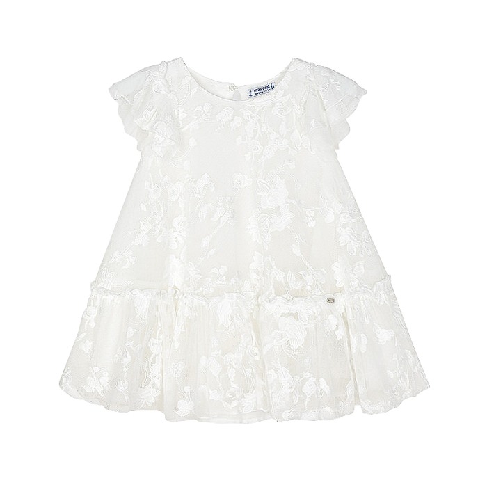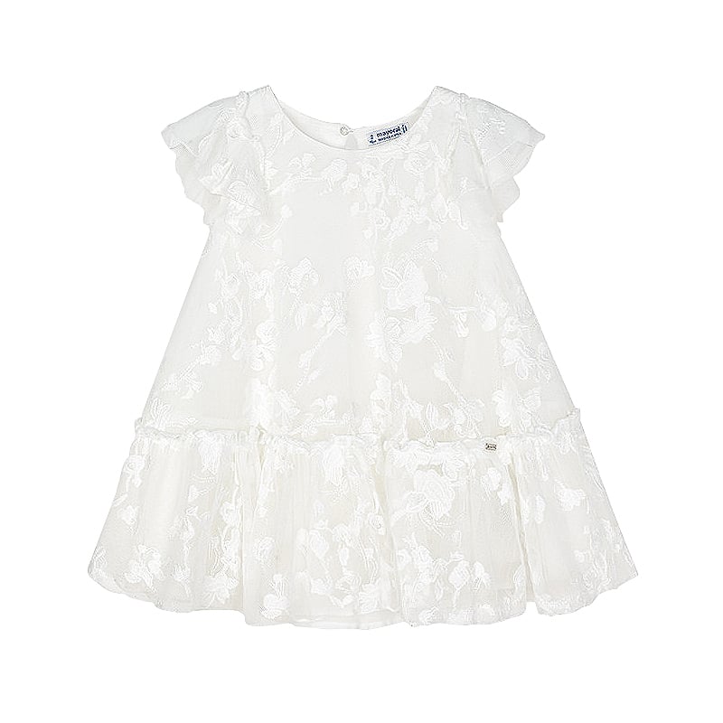 Rochie tul brodat - Alb Floral Rochita fara maneci are un guler rotund, iar la spate, are o mica deschidere pentru inchiderea cu nasture, pentru a usura imbracarea acesteia.Rochia are la umeri si in partea de jos, aplicate volane, deasemeni aceasta fiind si captusita.Este fabricata din material de tul brodat, vaporos, apartinand liniei noastre elegante si exclusive destinata pentru ocaziile speciale. Material: rochie - 62% poliamida / 31% viscoza / 7% bumbac captuasala - 72% bumbac / 28% poliesterCuloare: albDesign: flori brodateIntretinere: