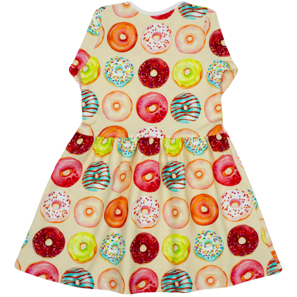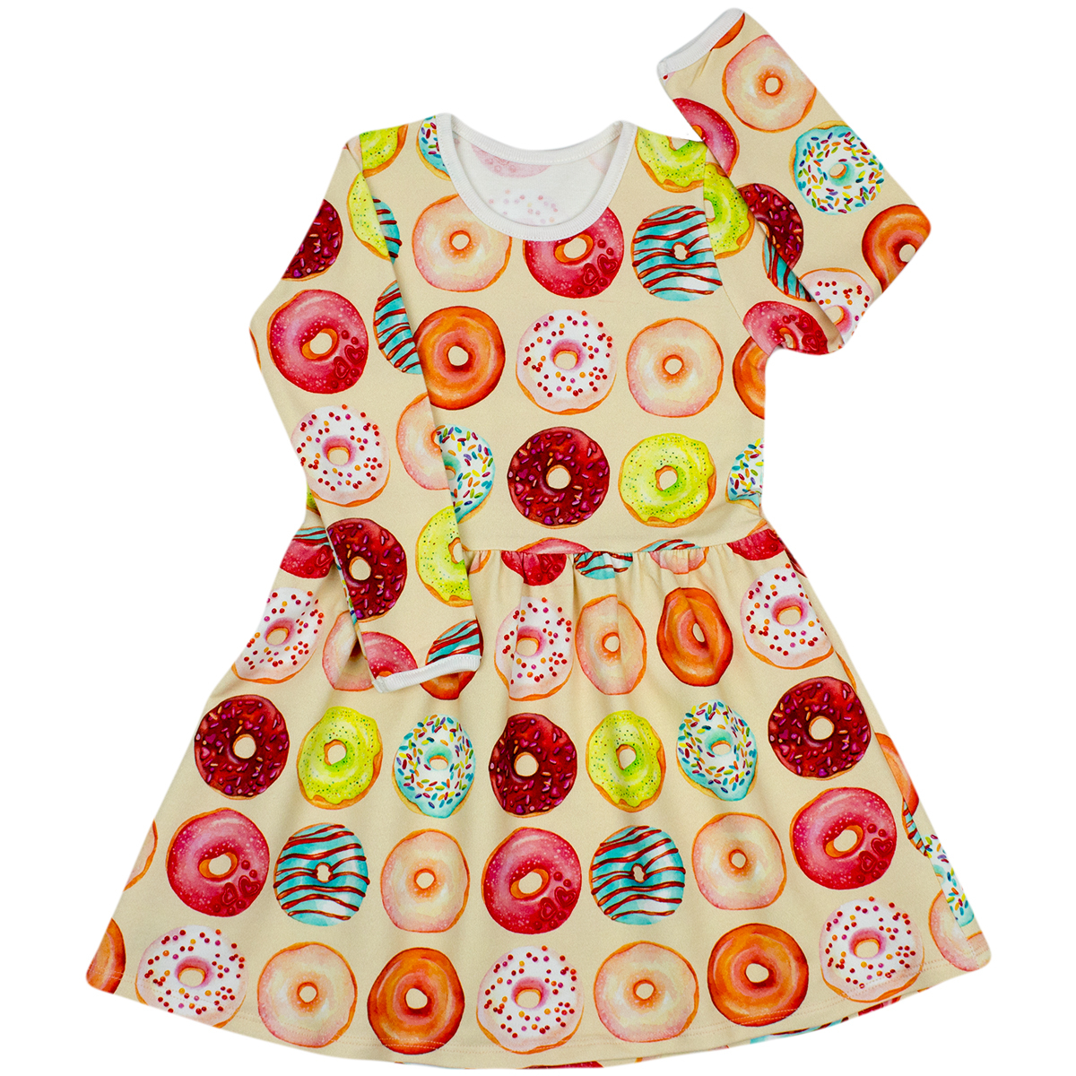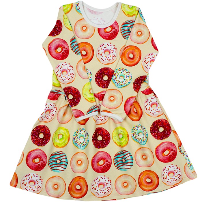 Rochita cu maneca lunga imprimeu gogosi Rochita cu maneca lunga este fabricata dintr-un jersey imprimat. Rochita este la baza gatului iar in talie este prinsa usor cu un elastic pentru a se increti lejer la mijloc. Materialul de calitate, imprimeul vesel si croiala ampla , toate vor crea o stare extraordinara de confort copilului .