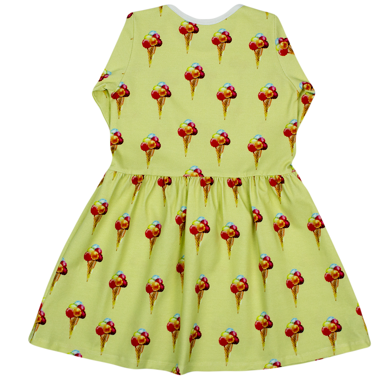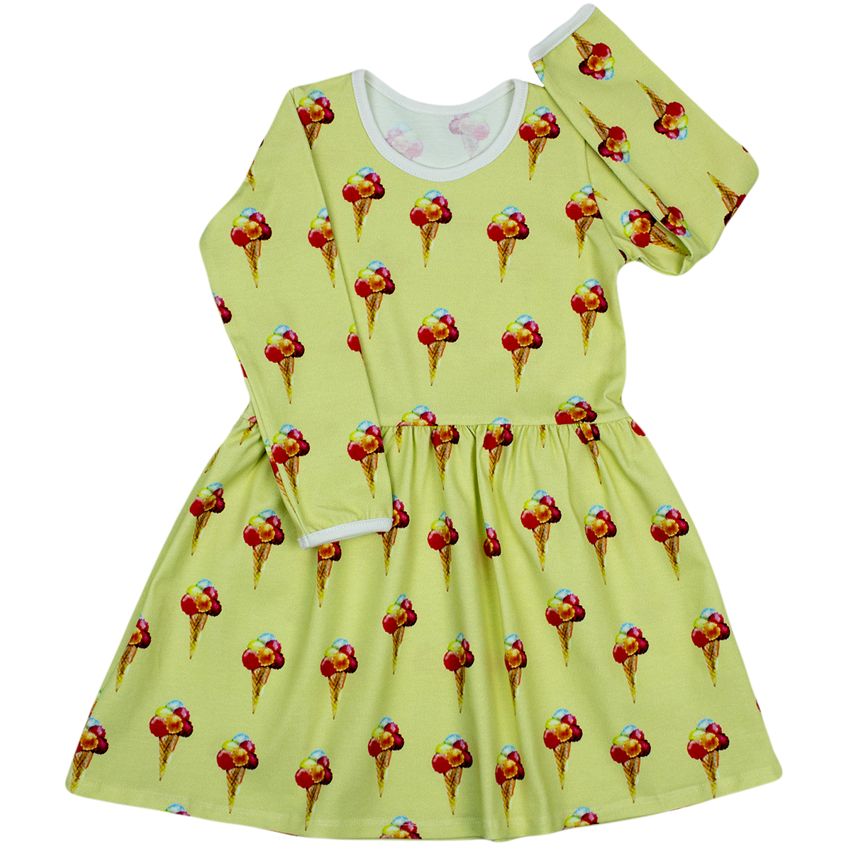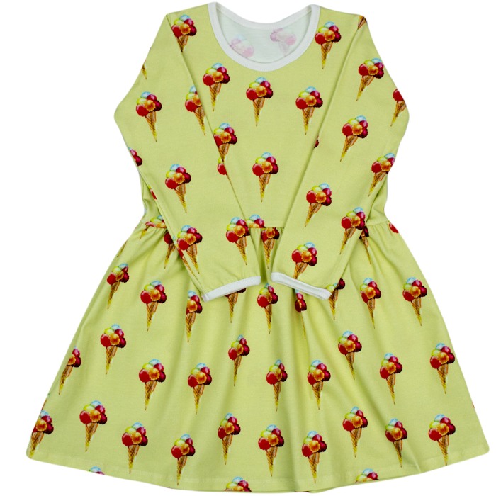 Rochita cu maneca lunga imprimeu inghetate la cornetRochita cu maneca lunga este fabricata dintr-un jersey imprimat. Rochita este la baza gatului iar in talie este prinsa usor cu un elastic pentru a se increti lejer la mijloc. Materialul de calitate, imprimeul vesel si croiala ampla , toate vor crea o stare extraordinara de confort copilului .