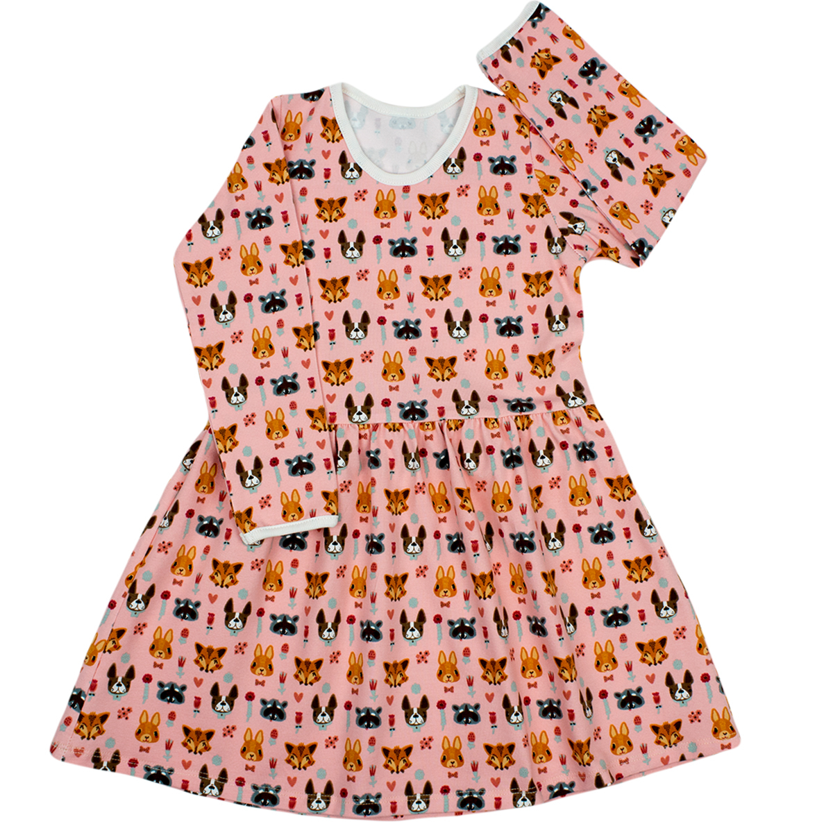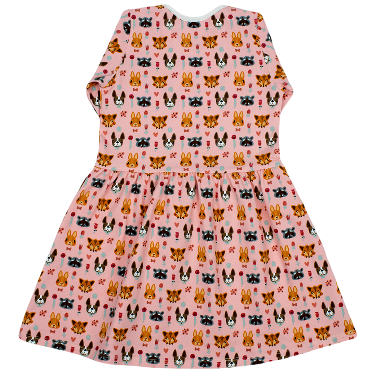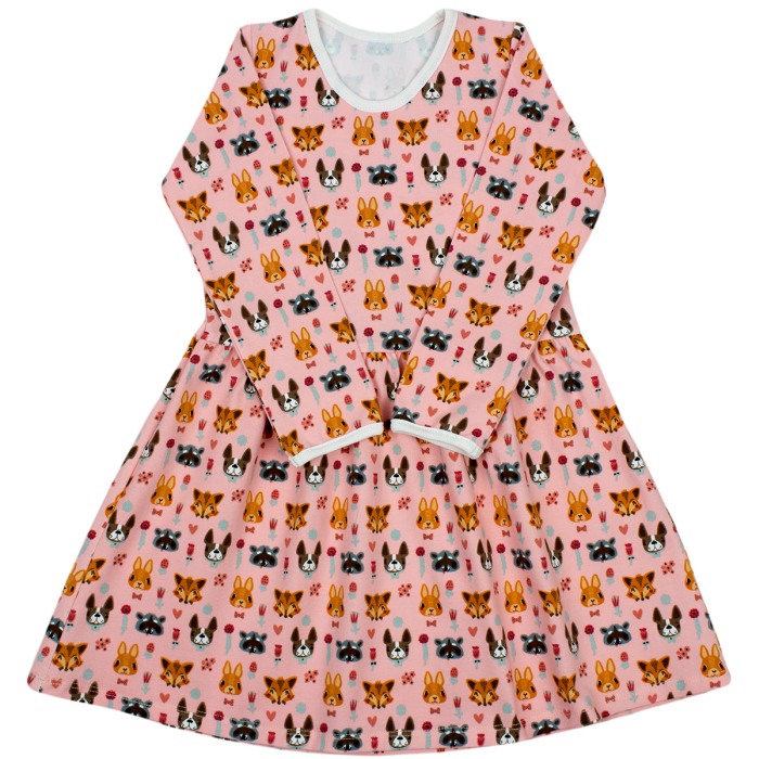 Rochita cu maneca lunga este fabricata dintr-un jersey imprimat. Rochita este la baza gatului iar in talie este prinsa usor cu un elastic pentru a se increti lejer la mijloc. Materialul de calitate, imprimeul vesel si croiala ampla , toate vor crea o stare extraordinara de confort copilului. Culoare: piersica