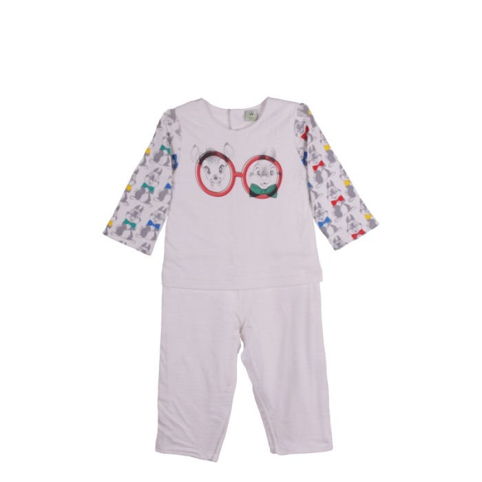 Este comoda si se imbraca foarte usor. Are un rand de capse pe spatele bluzei si un rand de capse pe pantalon.Culoare: alb-bejLicenta: DisneyIntretinere: