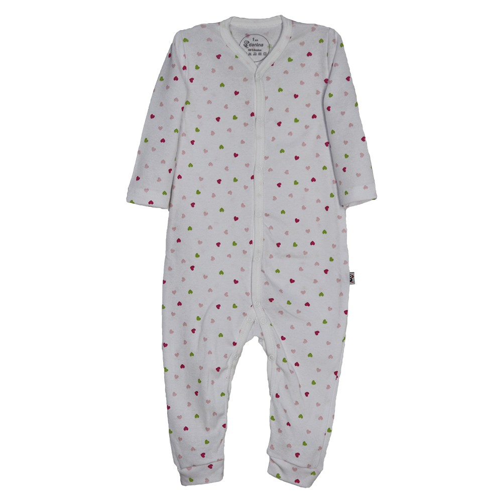 Salopeta maneca lunga - InimioareSalopeta este practica si se inchide cu capse pe partea din fata, inclusiv pe picioruse cu 13 capse si are o croiala larga pentru a fi imbracata usor. Poate fi o pijama comoda sau o salopeta de joaca excelenta si in acelasi timp utila in garderoba bebelusilor in serile racoroase. Materialul este de buna calitate si rezistent la spalat.