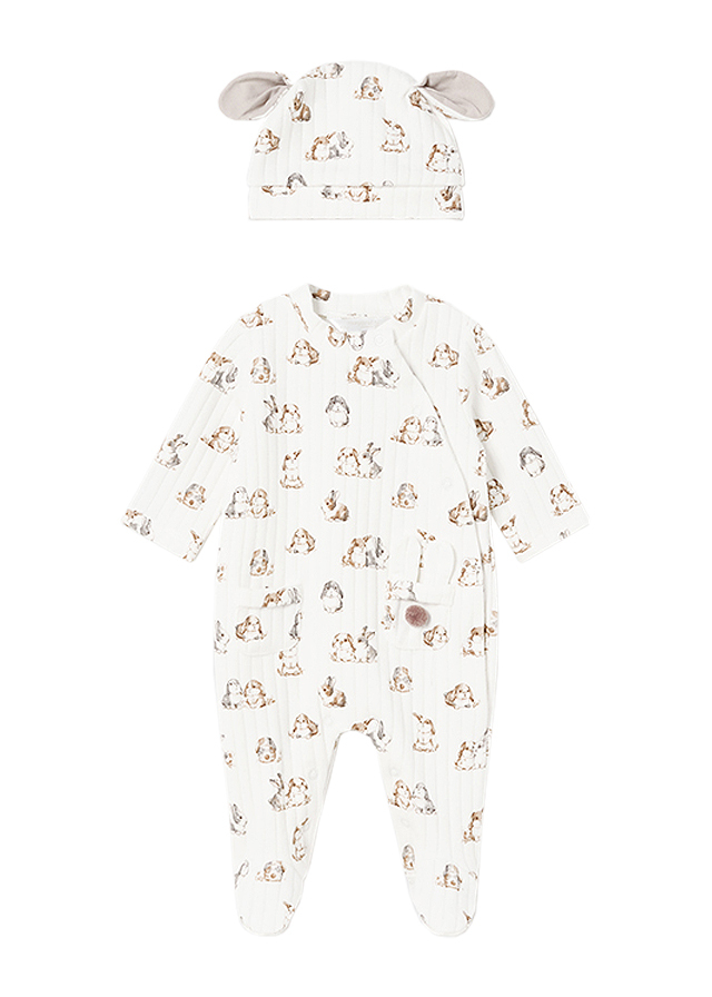 Salopeta (pijama)+caciulita - iepurasi - Mayoral 2-4 luni