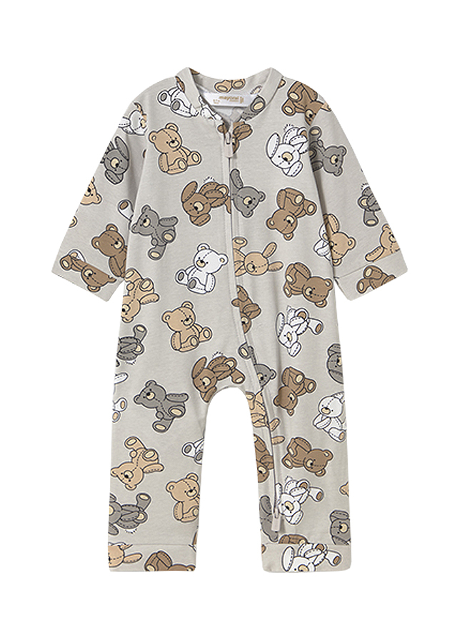 Salopeta (pijama) cu botosi convertibili Salopeta (pijama) are maneca lunga, gulerul rotund si botosi convertibili. Aceasta este practica pentru ca acopera piciorusule bebelusului si nu are nevoie de sosete. Se inchide cu fermoar pe partea din fata a salopetei, inclusiv pe picioruse si are o croiala larga pentru a fi imbracata usor. Poate fi o pijama comoda sau o salopeta de joaca excelenta si in acelasi timp utila in garderoba bebelusilor in serile racoroase. Materialul este de buna calitate si rezistent la spalat. Material: 95% bumbac / 5% elastanCuloare: griImprimeu: ursuleti / iepurasiIntretinere: