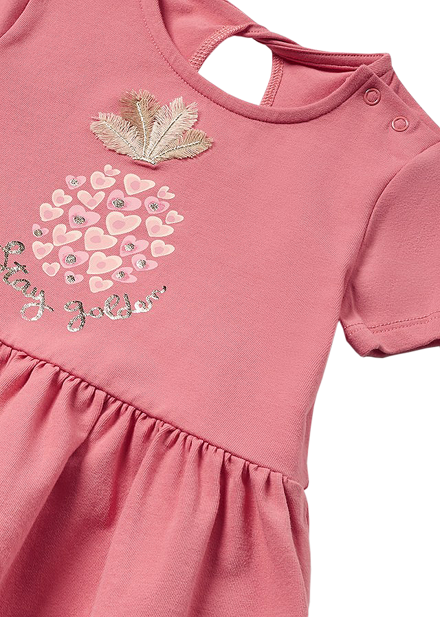 Bluza cu maneca lunga are guler rotund, iar inchiderea se face cu nasturi pe umar , pentru a facilita imbracarea bebelusului. Bluza are pe margine un volanas aplicat.Elemente decorative: aplicatie ananas.Material: bluza: 95% bumbac / 5% elastanCuloare: piersicaIntretinere: Spalare: automata / manuala Temperatura: max. 30°C Stoarcere: automata (numar mediu de rot/min) / manuala Interzis: albirea, curatarea chimica si uscarea la tambur Calcare: max. 110°CPantaloni Acesti pantaloni tip colanti sunt confortabili, rezistenti si au elastic in talie.Sunt de nelipsit din dulapul unui bebelus.Material: pantaloni : 95% bumbac / 5% elastanCuloare: roz pudrat cu imprimeu ananasIntretinere: Spalare: automata / manuala Temperatura: max. 30°C Stoarcere: automata (numar mediu de rot/min) / manuala Interzis: albirea, curatarea chimica si uscarea la tambur Calcare: max. 110°C