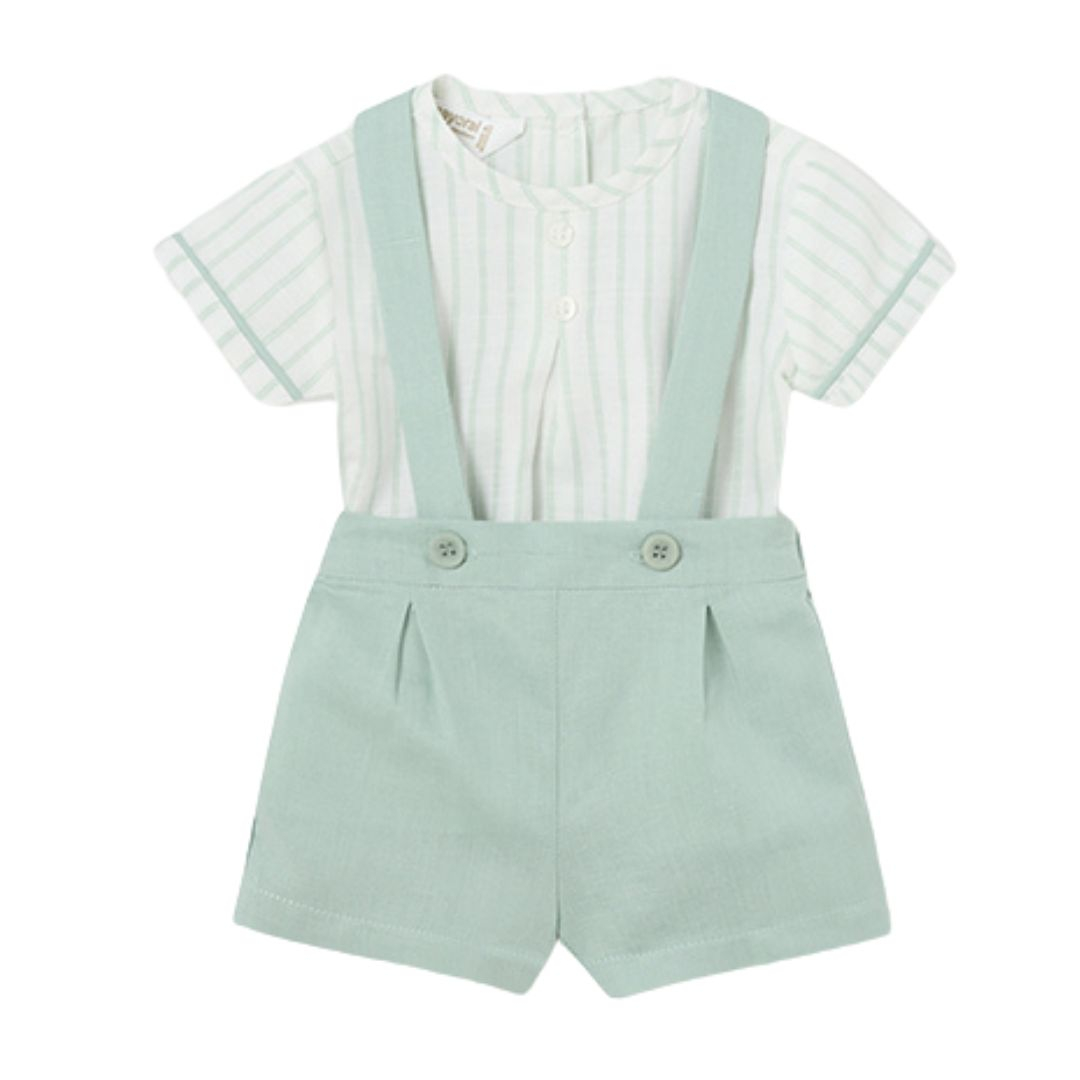 Set 2 piese din in vernil pentru nou-nascut baiat - Mayoral Compleul pentru baieti este format din: - camasa cu maneca scurta