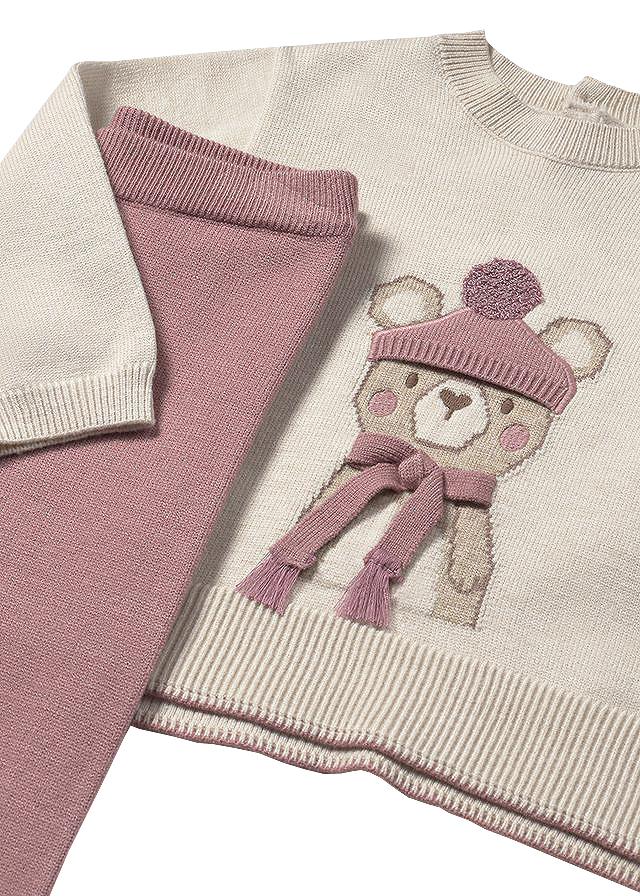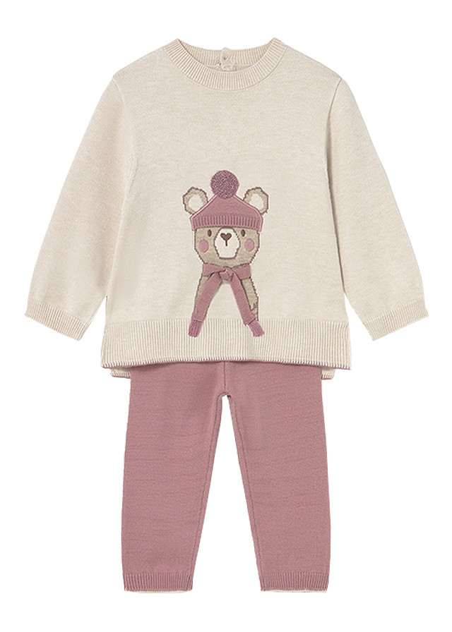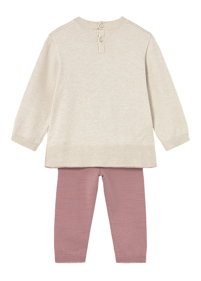 Set 2 piese - Pulover + pantaloni tricotati - bej/roz - Mayoral