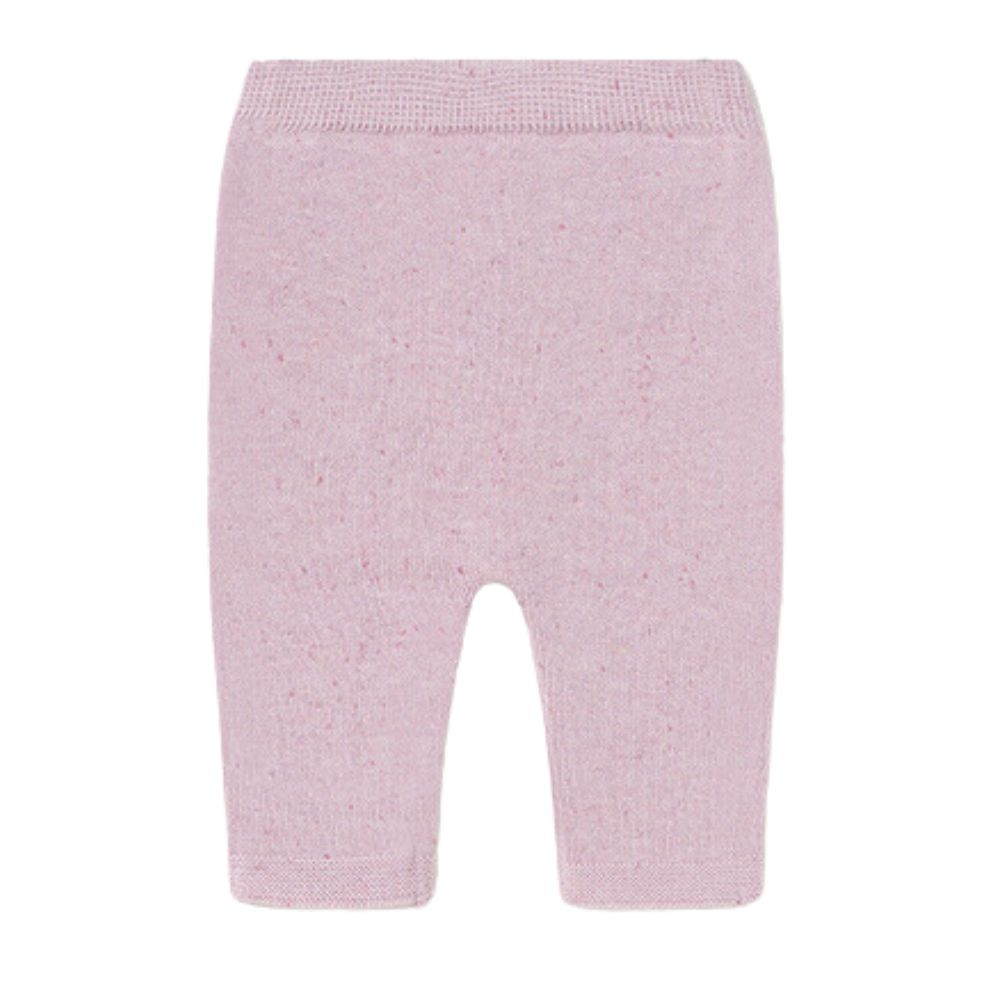Pantaloni lungi tricotPantaloni tricotati din fir de bumbac fin. Elastic in talie pentru o mai buna ajustare.Acestia au elastic in talie pentru o mai buna ajustare. Fundita roz atasata.Material: 95% bumbac / 5% elastan