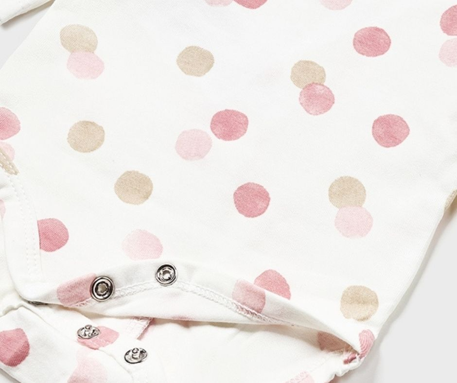 Calcare: max. 110°C, de preferat fara aburBodyBody cu maneca lunga pentru nou-nascut cu volanase la umeri. Guler rotund. Inchidere prin capse pe partea posterioara pentru a facilita imbracarea si inchidere cu capse intre picioare .