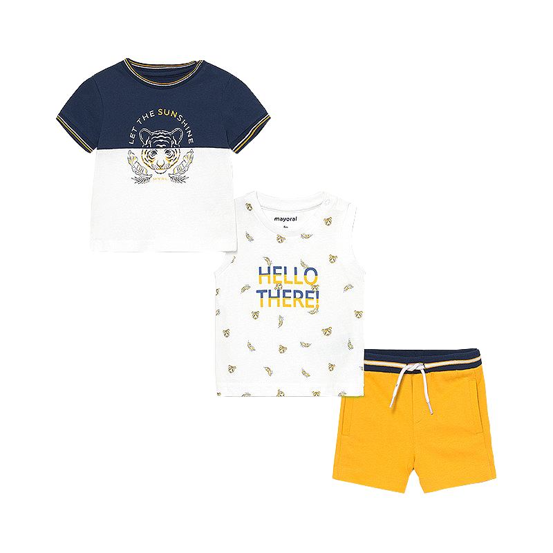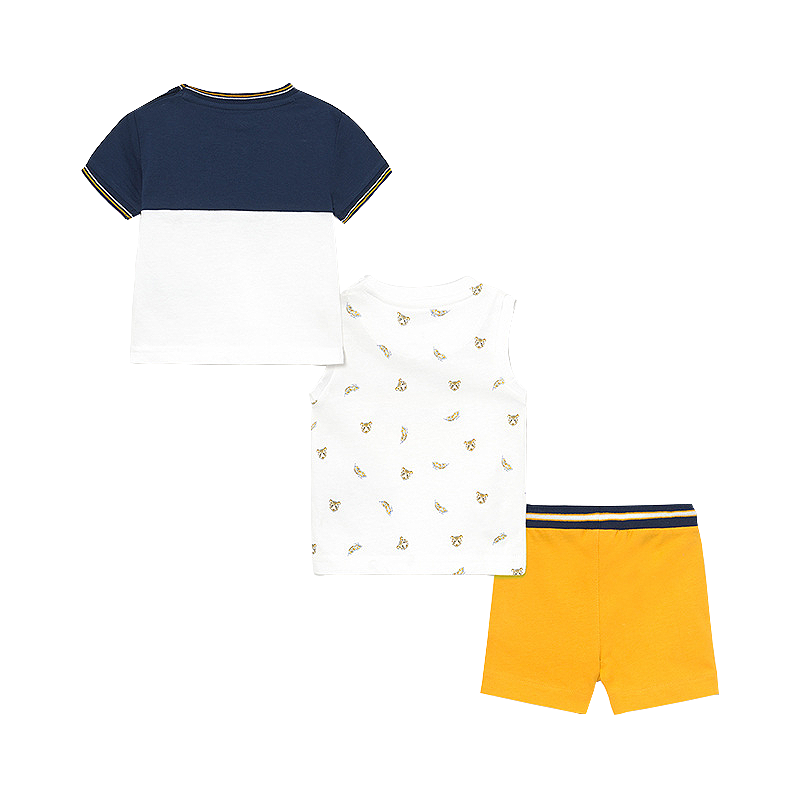 Set 3 piese - Tricou, maiou si pantaloni scurti Setul pentru baieti este format din: - tricou - maiou - pantaloni scurtiTricou