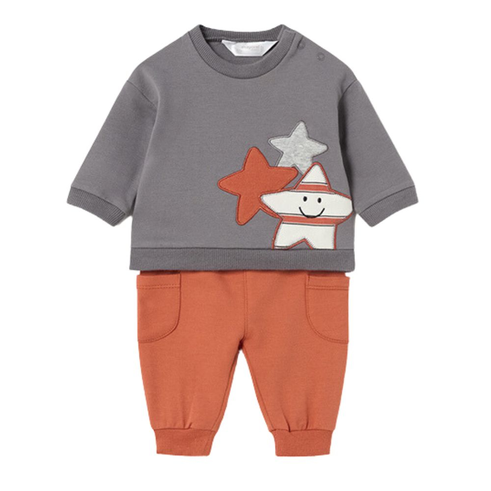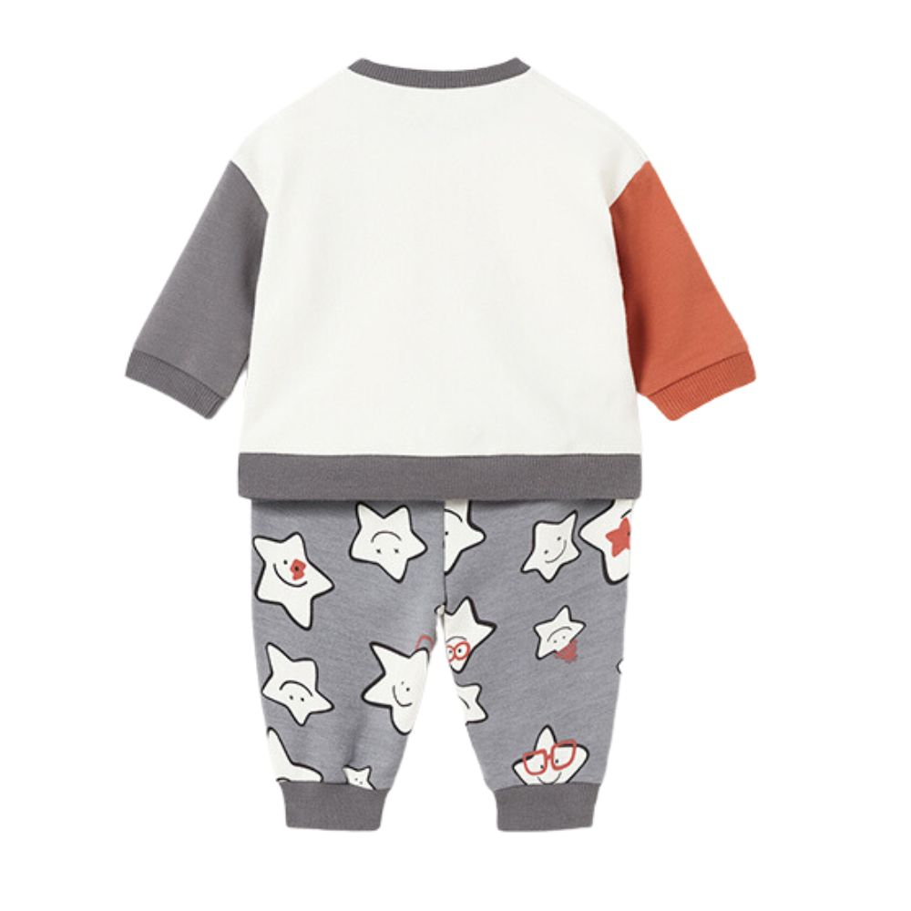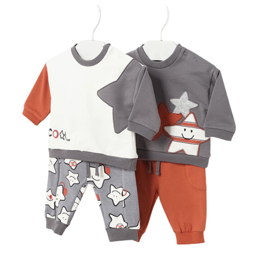 Set 4 piese Stelute bumbac BCI nou-nascutCompleul pentru baieti este format din: - 2 bluze cu maneca lunga - 2 pantaloni lungiBluza cu maneca lungaBluza cu maneca lunga are gulerul rotund si se inchide cu capse pe umerul stang, pentru a facilita imbracarea bebelusului.Material: 95% bumbac / 5% elastanCuloare: caramiziu /alb /griIntretinere: Spalare: automata / manuala, cu detergent pentru rufe delicate